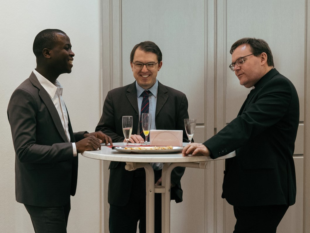 Nach der gemeinsamen Vesper und dem anschließenden Abendessen am Freitagabend gab es eine Hausführung durch das von Alexander Freiherr von Branca entworfene und 1987 von Papst Johannes Paul II. eingeweihte Augsburger Priesterseminar, anschließend die Möglichkeit, sich beim gemeinsamen Ausklingenlassen des Abends gegenseitig besser kennenzulernen.