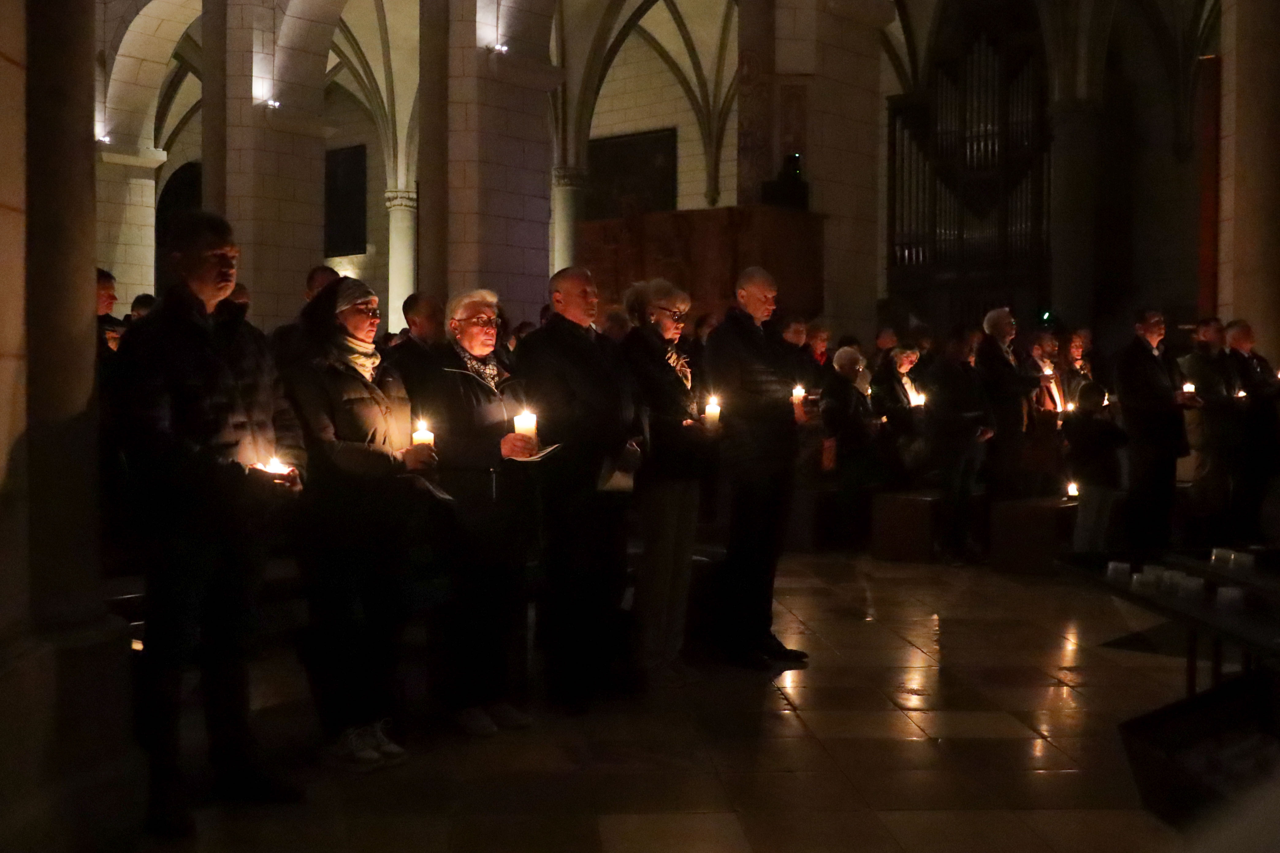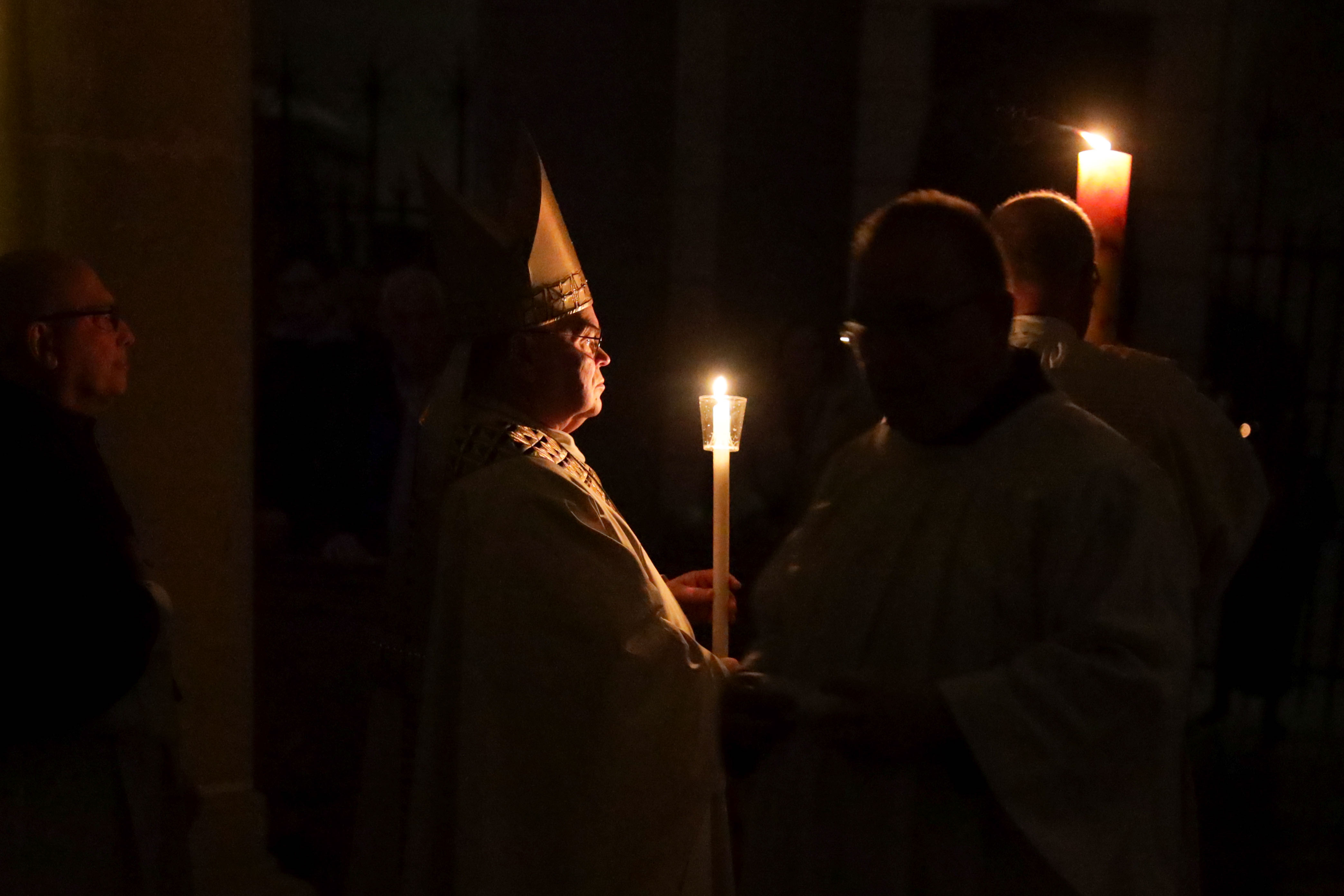 Tröstlich sei aber auch, dass Jesus die „Abschlussprüfung des Sterbens mit Bravour bestanden“ habe. „Er hat alles, was auf uns wartet, schon durchschritten und überschritten“, betonte Bischof Bertram zum Ende seiner Predigt. Auch der junge Mann im Grab habe darauf hingewiesen: „Er geht euch voraus.“ Wo immer wir also hingehen würden, der Auferstandene sei immer schon da.
