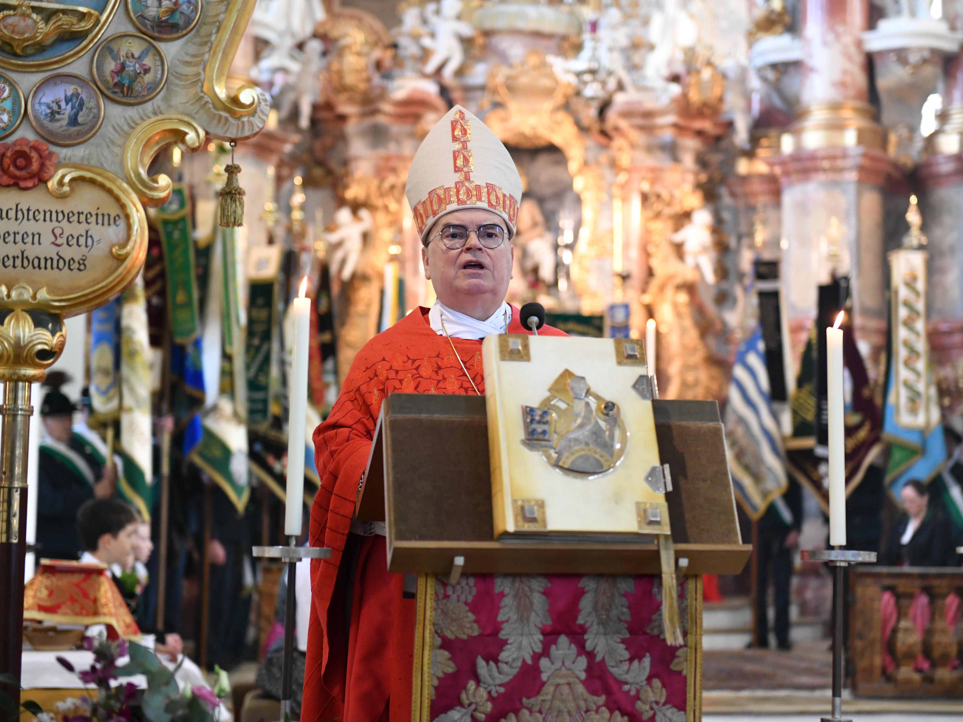 Alleine könne ein Christ dabei nie sein, so der Bischof weiter. Denn Kraft der Taufe entfalte der Heilige Geist in jedem Gläubigen seine guten Gaben und nehme zugleich den Einzelnen in die Familie Gottes, die Kirche auf. „Der Heilige Geist sammelt die einzelnen Christen. Das wird heute durch die Trachtlerwallfahrt eindrucksvoll erfahrbar, wenn Sie sich aus den verschiedenen Verbänden in der Wieskirche zusammenfinden. Danke, dass Sie uns das so lebendig vor Augen führen. Sie erweisen sich als gute Partnerinnen und Partner des Heiligen Geistes.“ Der Geist Gottes sei es, der in Bewegung setze und dem „Knochengerüst“ Kirche fortwährend Leben einhauche.