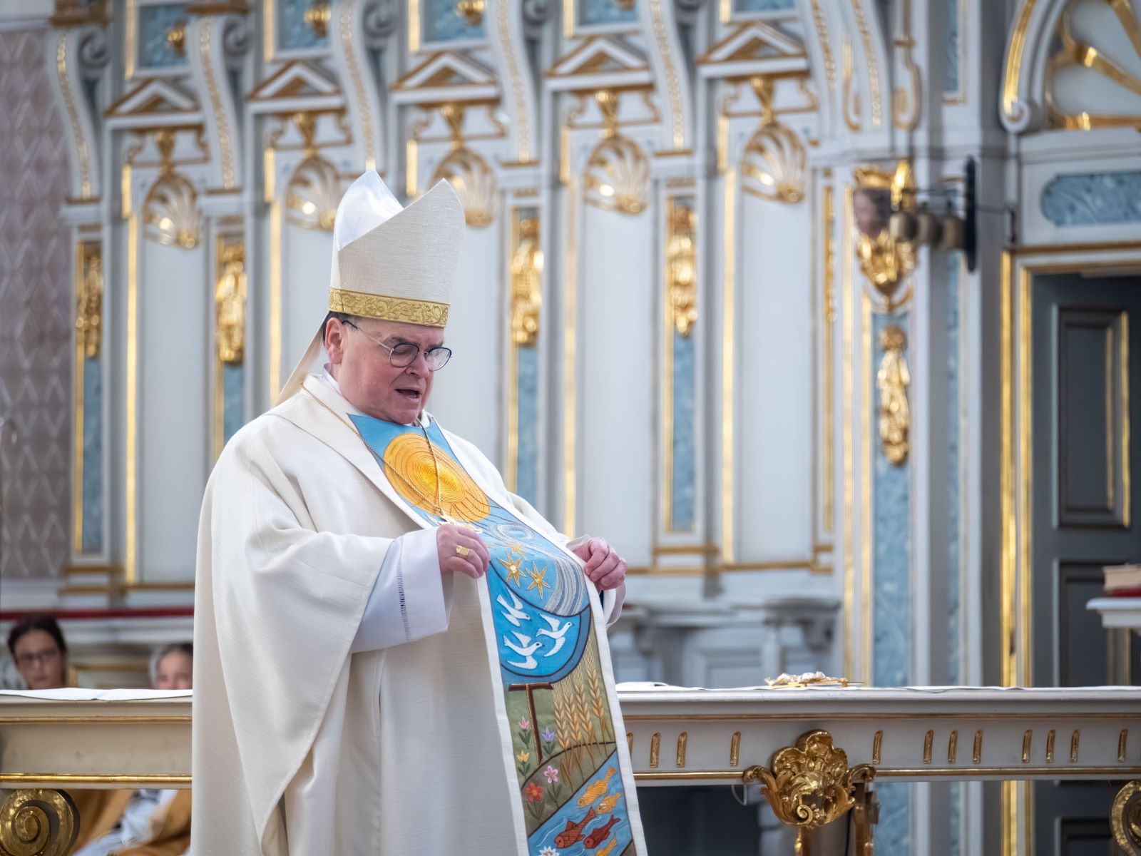 Angesichts der in großen Scharen erschienen Schülerinnen, Schüler und Studierenden der vier Bonaventura-Schulen in Dillingen entschied der Bischof sich spontan, seine Predigt auf die zwei wesentlichsten Punkte zusammenzufassen, wie sie auch schon durch sein Messgewand symbolisiert würden. Der Spruch auf der Rückenseite „Baue meine Kirche auf“ sei ebenjene Botschaft Christi gewesen, die der heilige Franziskus in einer Vision vernommen und zum Leitbild für sein Leben ausgewählt habe. „Franziskus hat das zunächst ganz wörtlich genommen. San Damiano, eine kleine Kirche, dem Verfall preisgegeben, hatte Franziskus vor Augen, und er hat angefangen, mit seinen besten Freunden zunächst einmal Steine zu sammeln, um dieses Ruinenkirchlein wiederaufzubauen. Und nach und nach ist Franziskus ein Licht aufgegangen: Es geht nicht nur darum, Steine zu sammeln!“