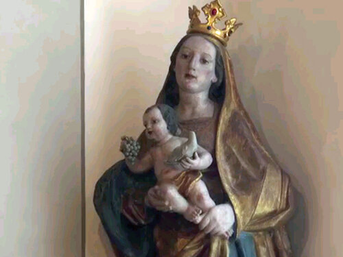 Dabei nahm er die Knoten zerstrittener Ehepaare ebenso in den Blick wie die in unseren Gemeinschaften und Gruppen - auch in der Kirche - sowie die Schlingen, in denen ein Mensch mit sich allein ist. „Helfen wir einander beim Knotenlösen“, ermutigte Bischof Bertram die Mitfeiernden vor den Bildschirmen. Auch in der ersten feierlichen Maiandacht am Abend stellte er den Rosenkranz in den Mittelpunkt eines kurzen Geistlichen Wortes.