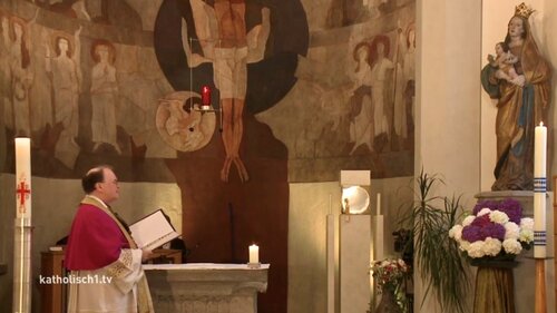 Am Abend des 1. Mai feierte Bischof Bertram in der Bischöflichen Hauskapelle eine erste feierliche Maiandacht, in der er das Bistum - wie zuletzt schon am 25. März - der Muttergottes weihte. In einem kurzen Geistlichen Wort zu Beginn der Andacht lud der Bischof die Gläubigen vor den Bildschirmen dazu ein, im Monat Mai besonders den Rosenkranz zu beten und auf Maria zu schauen. Damit blieben wir aber nicht bei der Muttergottes stehen, sagte der Bischof. "Mit den Augen Marias nehmen wir einzelne Stationen des Lebens Jesu in den Blick. Dabei gehen wir weit über den historischen Jesus hinaus und schauen auf den auferstandenen und erhöhten Christus."