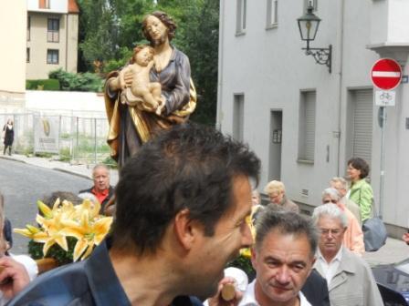 Im Anschluss an den Gottesdienst zogen die Männer in einer Prozession mit der Fatima-Madonna, der Josefs- und der Petrus-Canisius-Statue durch die Augsburger Innenstadt.