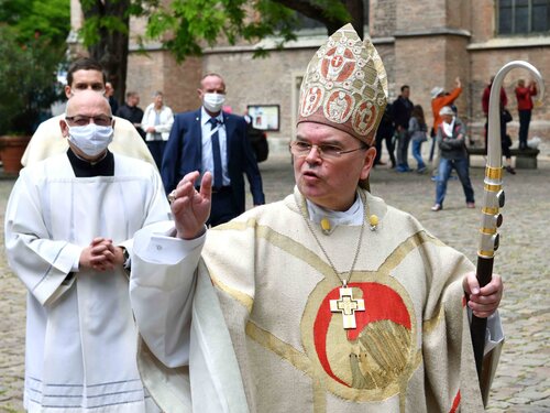 Die Aufregung jedoch war umsonst: Um genau 12.30 Uhr endet die Aufnahme und damit auch die Bischofsweihe. Nicht nur für den Bayerischen Rundfunk scheint alles geklappt zu haben. Die liturgische Prozession verlässt den Dom über das Bronzeportal zum Bischofshaus. Die geladenen Gäste stehen klatschend auf dem Domplatz, freuen sich, es scheint die Sonne. Und Bischof Bertram? Grüßt, winkt und lacht!
