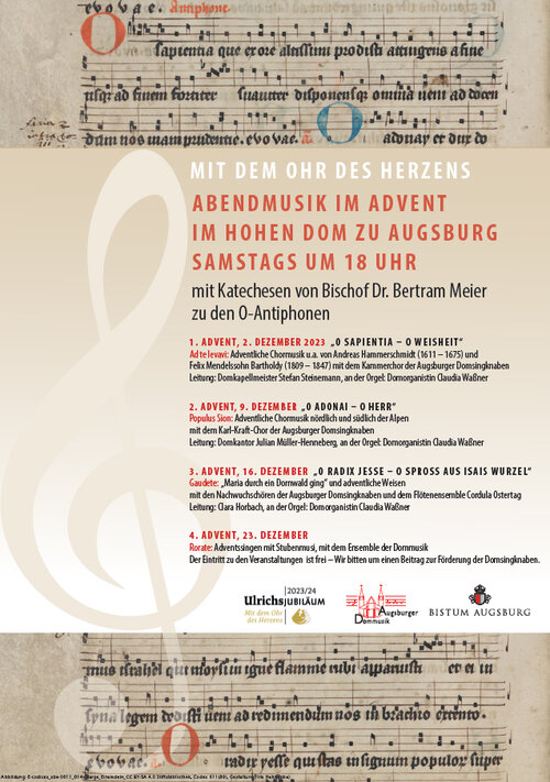 Mit seinen diesjährigen Betrachtungen, die er im Ulrichsjubiläumsjahr 2023/2024 ganz bewusst unter den Titel „Mit dem Ohr des Herzens“ gestellt hat, möchte Bischof Bertram in den Wochen vor Weihnachten an eine mehr als tausendjährige Tradition erinnern, die in Klöstern und Ordensgemeinschaften immer noch sehr lebendig sei, so der Bischof in seinem Vorwort. Eine Wiederentdeckung der O-Antiphonen könne sich aber auch „zur Vertiefung der persönlichen Spiritualität beziehungsweise der Glaubenspraxis in der Familie oder Pfarrei“ lohnen. Durch sie lasse sich Herz und Sinn auf das Kommen des Heilandes einstimmen.