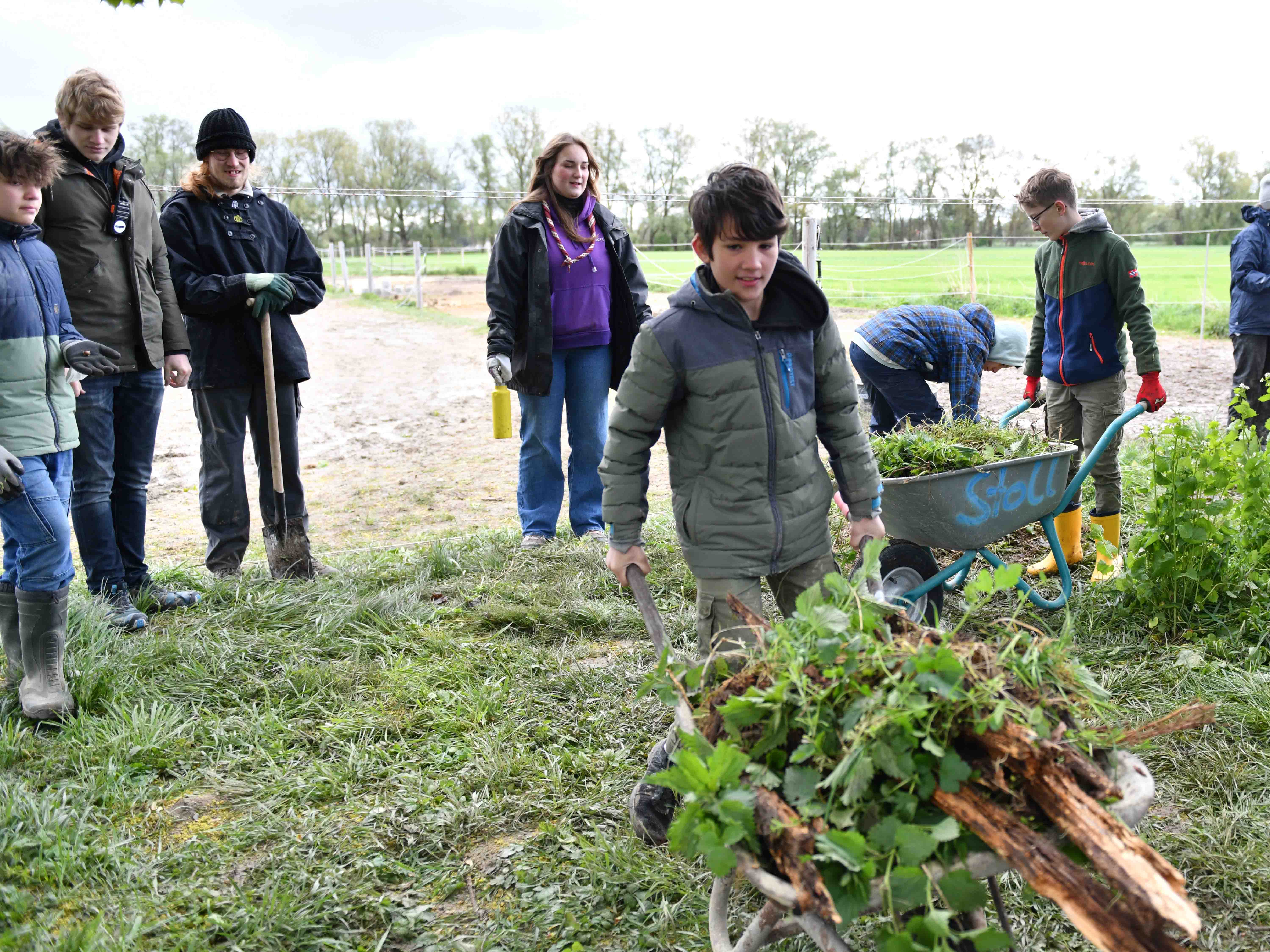 So ging es bei einem Kooperationsprojekt zwischen den Jugendpfadfindern des Bezirks Augsburg und dem Augsburger Pferdesportverein vor allem um handwerkliches Engagement. Die Instandsetzung der Pferdesporthalle und der Außenanlagen in der Firnhaberau in Augsburg sollte in 72 Stunden geschafft sein. Mit Schubkarren, Spaten und Malerpinsel ausgerüstet, ließen sich die Neun bis Dreizehnjährigen selbst vom Regen, Matsch und den kalten Temperaturen nicht abhalten.