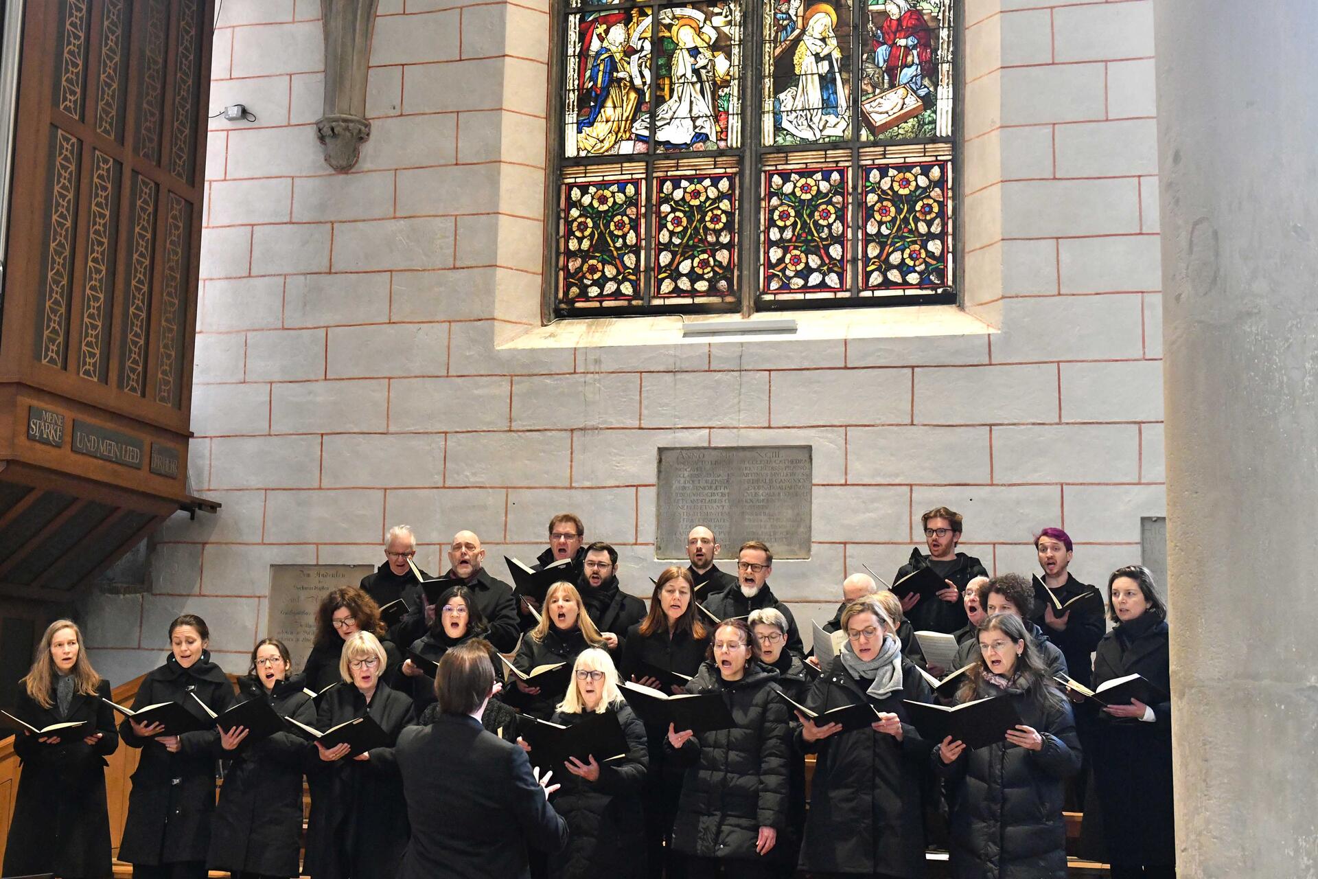 Musikalisch gestaltet wurde die Karfreitagsliturgie vom Kammerchor der Augsburger Domsingknaben unter der Leitung von Domkapellmeister Stefan Steinemann sowie dem Domchor, der von Diakon Andreas Martin dirigiert wurde. Die Leidensgeschichte nach dem Evangelisten Johannes von Matthias Degerr wurde vorgetragen im Zusammenklang von Solisten und Domchor. Zudem sangen die Domsingknaben verschiedene Passionsmotetten, unter anderem von Claudio Monteverdi, Giovanni Pierluigi da Palestrina und Thomas Tallis.