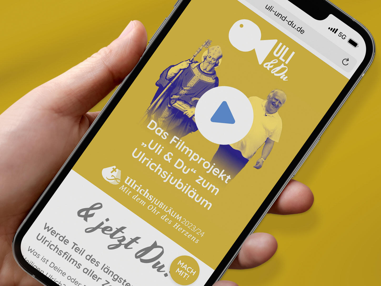 Jede und jeder hat eine Verbindung zum heiligen Ulrich – dieser Überzeugung folgend ruft das Bistum Augsburg im Vorfeld des Ulrichsjubiläums zur Videoaktion „Uli & Du“ auf. Alle Menschen sind darin eingeladen, ein Video zu dem Bistumspatron oder einer Jubiläumsveranstaltung vor Ort zu erstellen und hochzuladen. Die Videos werden dann auf der Homepage www.uli-und-du.de zu sehen sein.
