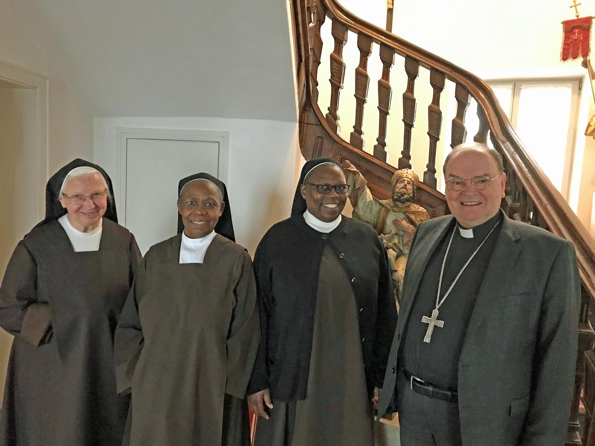 Anlässlich des Ulrichjubiläums besuchten die Karmelschwestern aus Mityana/Uganda in Begleitung von Sr. Stephanie aus dem Karmelkloster Welden Bischof Bertram Meier. Seit vielen Jahren steht Bischof Bertram mit den Karmelitinnen der Diözese Kiyinda-Mityana im Austausch. Er betonte in dem herzlichen Gespräch, wie wichtig ihm die Kontakte und die freundschaftliche Verbundenheit in der Weltkirche seien. Dabei ginge es aber nicht in erster Linie um finanzielle Projekte. Vielmehr seien es die spirituellen und pastoralen Erfahrungen, die Weltkirche lebendig werden ließen.