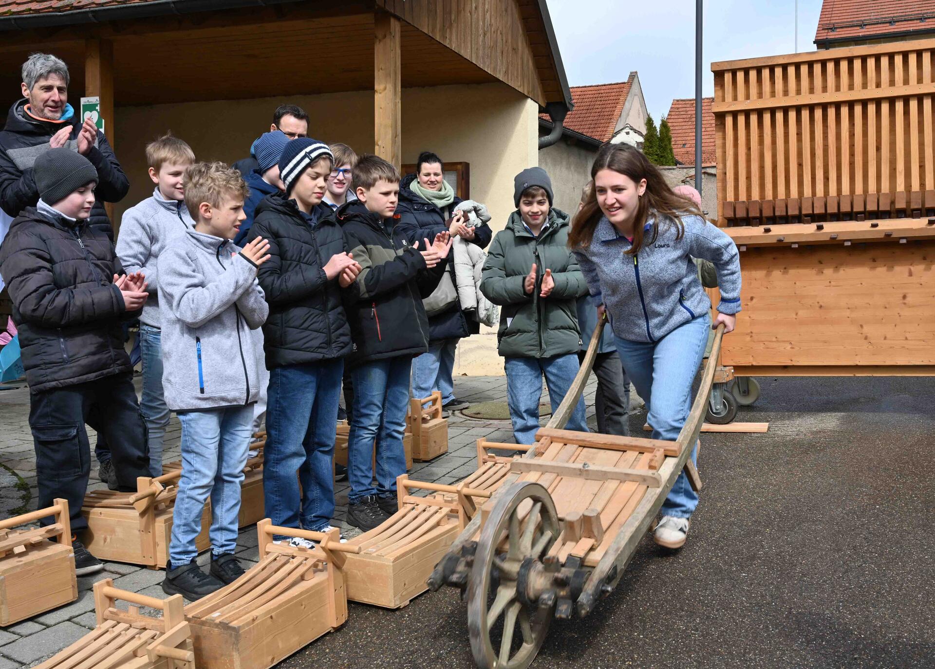 Augsburg (pba). Wenn von Gründonnerstag bis Karsamstag die Kirchenglocken schweigen, holen die Ministrantinnen und Ministranten des Bistums ihre Rätschen heraus. Ihren ersten Einsatz mit den klappernden Holzinstrumenten hatten die Mädchen und Jungen aber bereits an diesem Montag. Zur Eröffnung der diözesanen Rätschaktion in Birkhausen (Wallerstein) ließen sie es auf dem Kirchplatz richtig krachen. Auch Bischof Bertram hatte seine Freude und rätschte ordentlich mit.