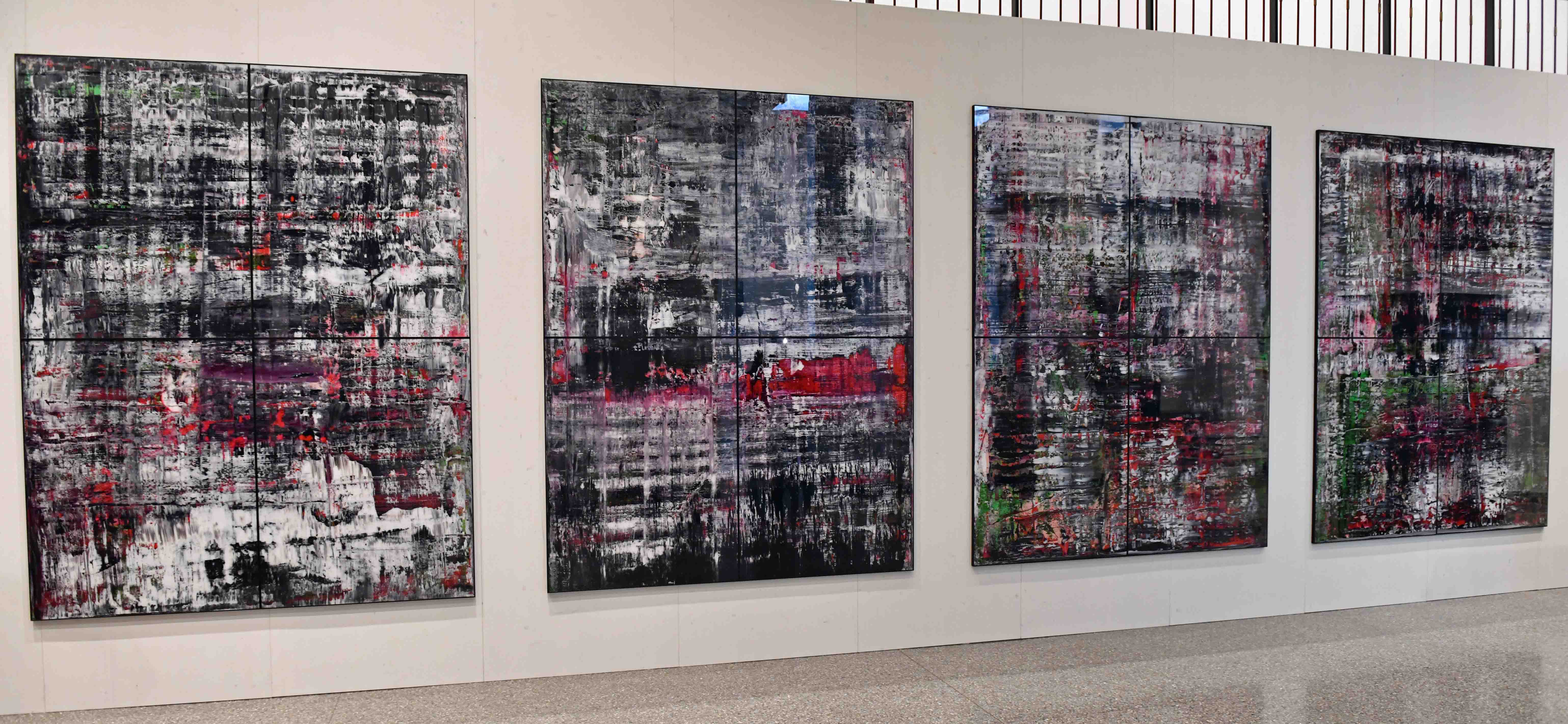 Der nach sechsjähriger Auseinandersetzung fertig gestellte Zyklus war das Ergebnis eines intensiven Ringens um den angemessenen Umgang mit dem zutiefst Abgründigen: Richter arbeitete unbeirrt am Unausdrücklichen, erstellte Zeichnungen, Studien, Gemälde und verwandelte schließlich Darstellungsräume in Empfindungsräume: Trauer und Trauma, Schmerz und Scham sind ihnen eingegraben. Seine künstlerische Reflexion führt ihn vom Abbild zum Abstraktum. Dabei unterstreicht die ungewohnte Beschränkung auf die zwei Farben Grün und Rot und die beiden Nichtfarben Weiß und Schwarz die Radikalität der Bildwirkung. Bemerkenswerterweise hat Gerhard Richter sich entschieden, die 200 x 260 cm großen Ölgemälde unmittelbar nach ihrer Fertigstellung digital duplizieren zulassen. Das Duplikat wird jedoch auf Wunsch des Künstlers fragmentiert in vier Teilen pro Bild angefertigt.
