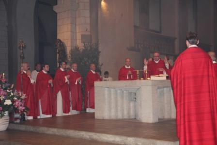 Die Liebe Gottes ist weit gegangen - bis ans Kreuz. Auch Petrus ist diesen Weg gegangen - bis zum Tod am Kreuz. Daran denken wir am Weihetag unseres Papstes. Die Cathedra Petri in Rom und der Thron des Wortes in unserem Dom: Gerade am 60. Jahrestag der Priesterweihe von Papst Benedikt erinnern wir uns, was der Bischof damals wie heute zu jedem Neupriester sagt: „Stelle dein Leben unter das Geheimnis des Kreuzes.“ Amen.