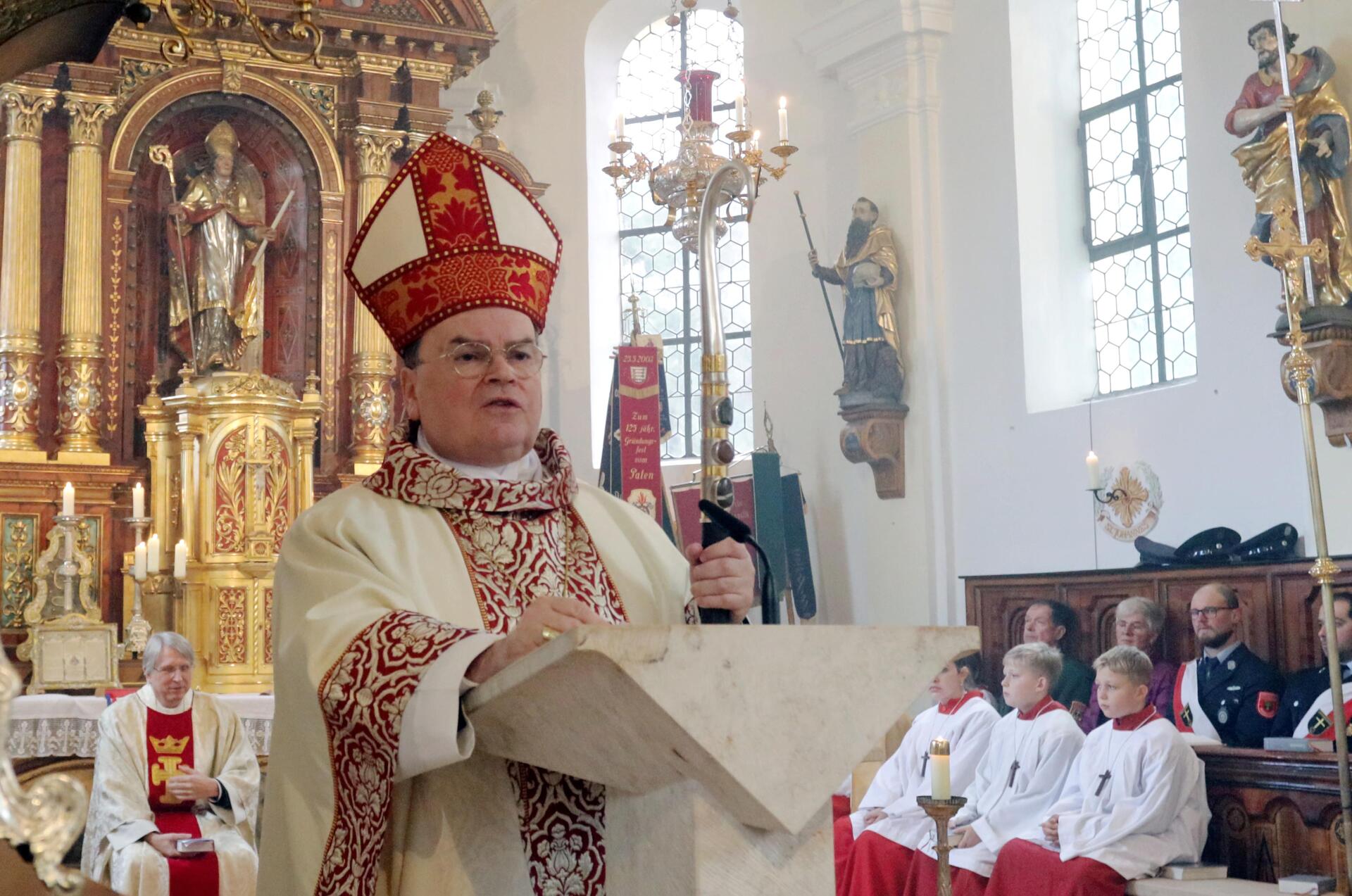 Dieses Bild, so der Bischof in seiner Predigt, sei ihm aufgefallen, weil die beiden Kronen bei aller Unterschiedlichkeit zu dem einen König gehörten, den man am Christkönigssonntag besonders verehre – Jesus Christus.