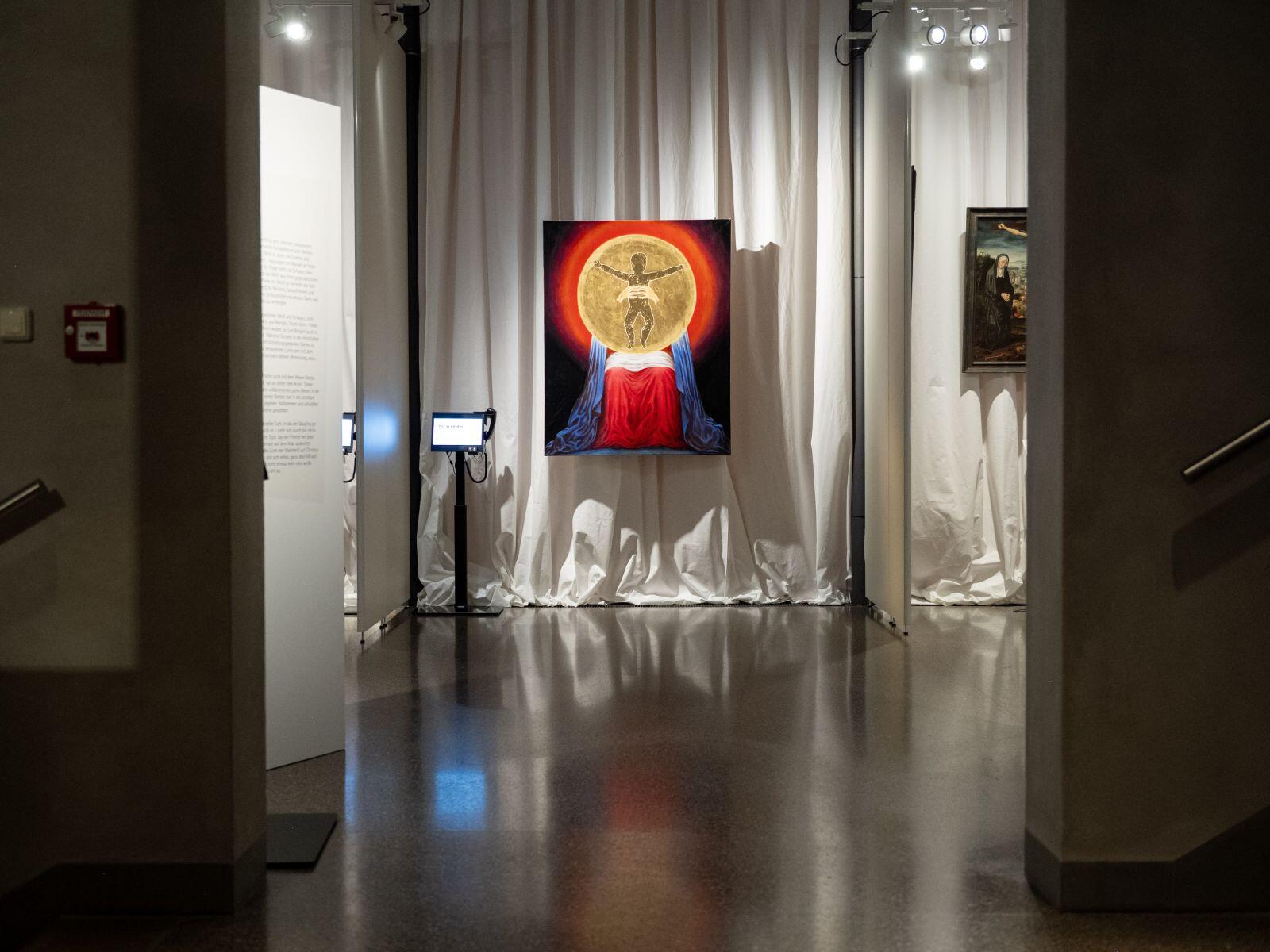 Konkret handelt es sich dabei etwa um ein Vanitas-Stillleben, das der Bistumspatronin Afra gegenübergestellt ist; um an weißen Tüchern aufgehängte Werke alter Meister, die mit modernen Stücken religiös aufgeladener Kunst in einen Dialog treten; oder auch der offen bleibenden und an die Besucherinnen und Besucher gestellte Frage, was sie in eine Schatzkiste hineinpacken würden. Dazu kommen zwei extra für die Ausstellung geschaffene Werke von Schülerinnen und Schülern der Städtischen Berufsoberschule Augsburg und der Fachakademie für Sozialpädagogik Maria Stern des Schulwerks der Diözese Augsburg.
