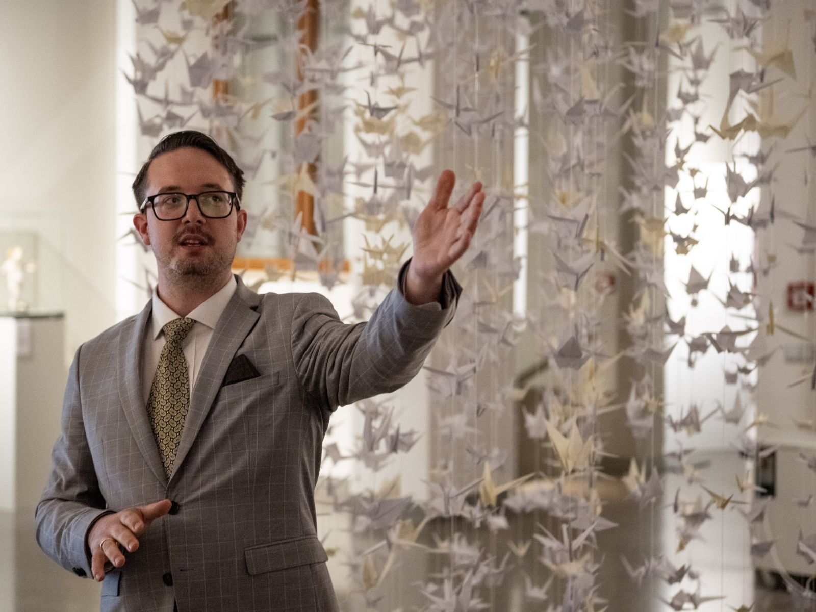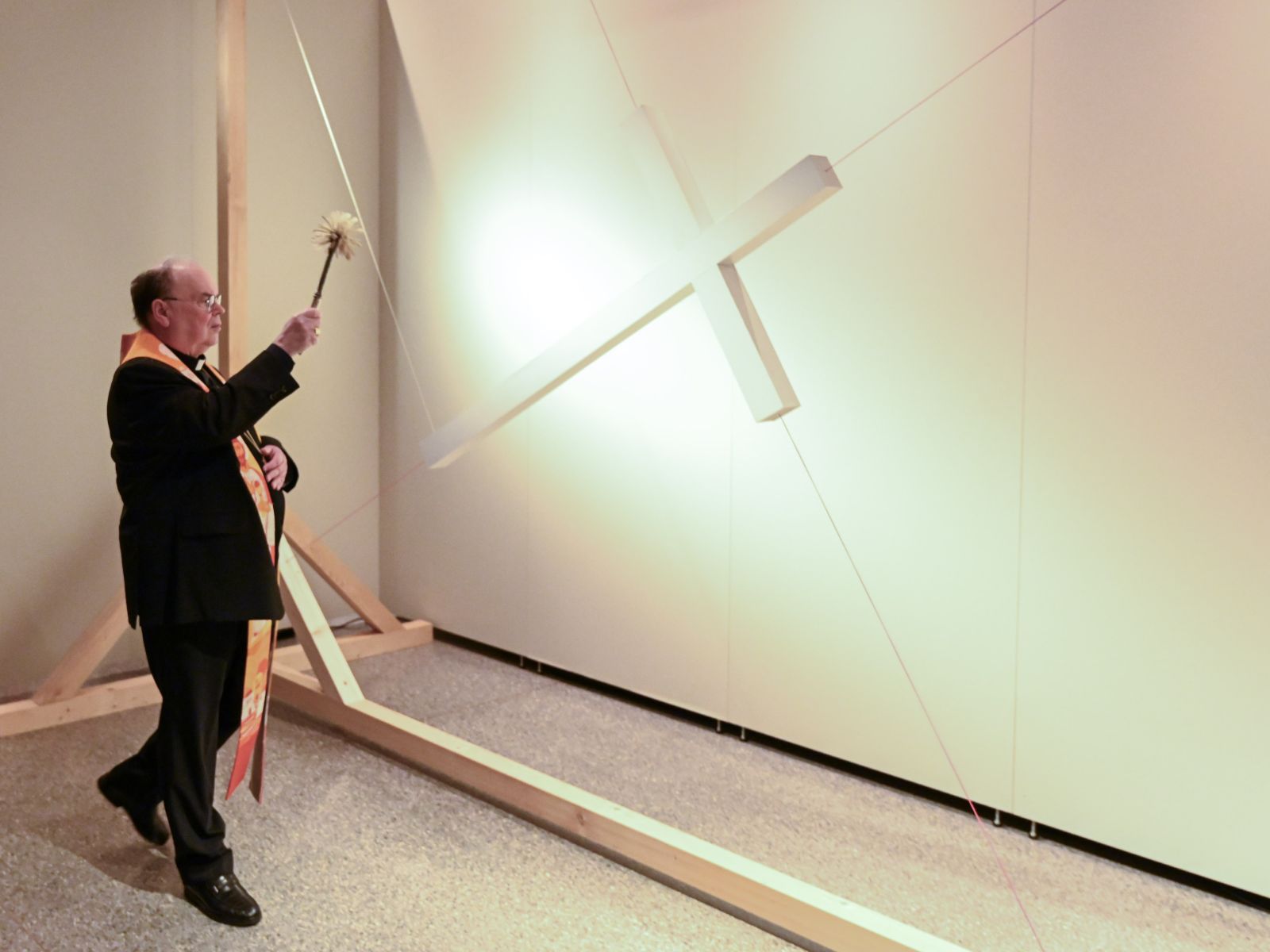 Während die Papierkraniche aus Maria Stern eine alte japanische Gebetstradition aufgreifen und zur aktiven Beteiligung am Kunstwerk einladen, verweisen die Kunstschaffenden der Berufsschule mit ihrem Holzkreuz darauf, dass Golgotha als Todesort Jesu uns näher ist, als man oft denkt. In Anlehnung an die Via Dolorosa in Jerusalem wurde das Kreuz zudem vor Ausstellungsbeginn auch durch die Straßen Augsburgs hin zum Museum in Prozession getragen.