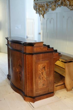 Der originale barocke Spieltisch wurde wieder eingebaut, nachdem dieser von den ursprünglich zwei Manualen auf drei Manuale erweitert wurde.
