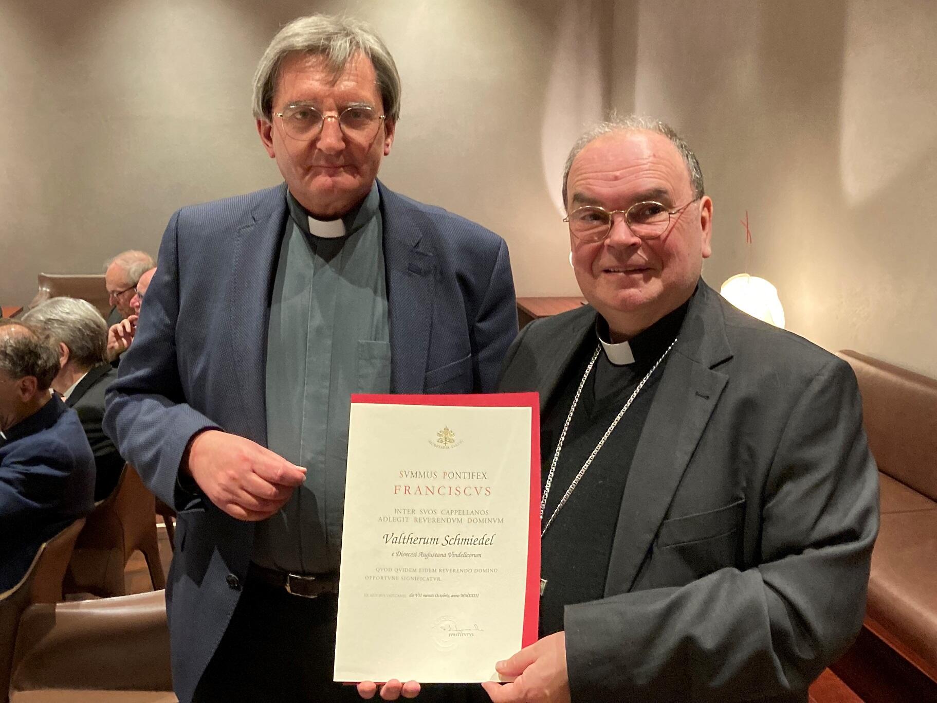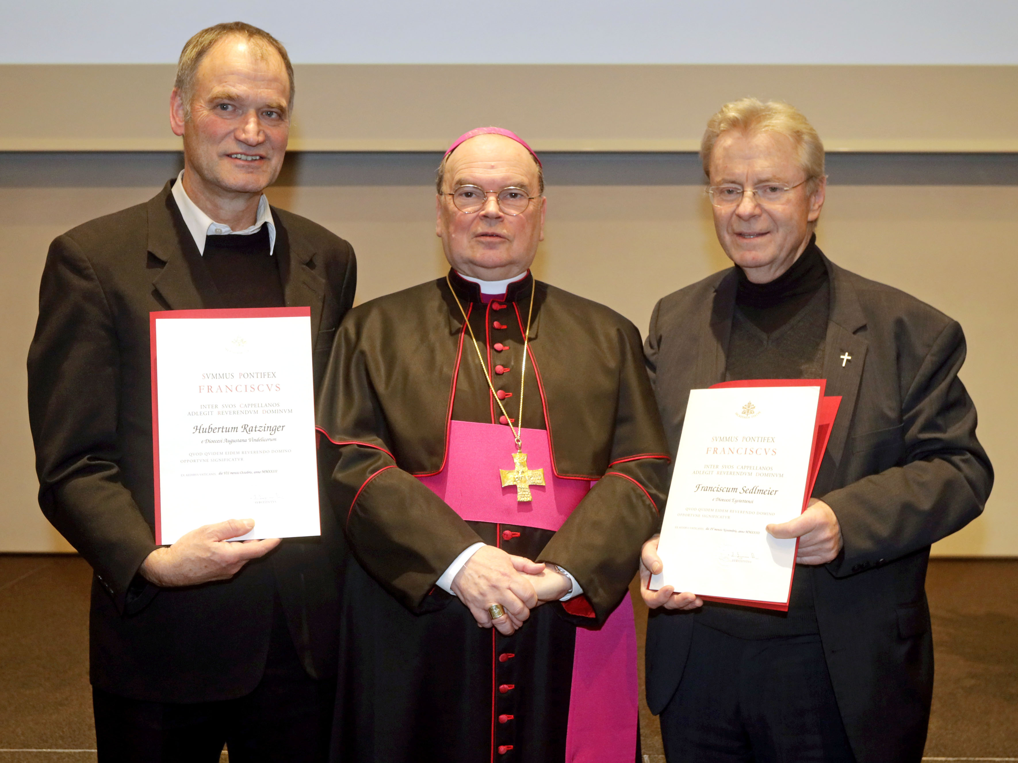 Drei der neuen Monsignori konnten aus gesundheitlichen oder terminlichen Gründen am Festakt nicht teilnehmen. Sie erhielten ihre Ernennungsurkunde bereits vorab aus den Händen von Bischof Bertram.