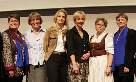 Augsburg (KDFB/pba). Der Katholische Deutsche Frauenbund (KDFB) in der Diözese Augsburg hat seit dem 13. Mai 2011 eine neue Spitze. 250 Delegierte wählten am vergangenen Freitag ein neues Vorstandsteam, das den Verband in den nächsten vier Jahren leiten wird. Bisher im Führungsteam schon mit dabei waren Wedigunda Zillner und Sabine Slawik aus Augsburg und Hildegard Bachmann aus Senden. Neu hinzu kommen nun die 48-jährige Beamtin Sabine Birgmeier aus Lützelburg und die 56-jährige Lehrerin Susanne Bernheim aus Augsburg. Maria Magdalena Eberle, 54-jährige Angestellte bei der Diözese Augsburg und erfahrene Bankkauffrau aus Dinkelscherben, wurde zur Schatzmeisterin gewählt.