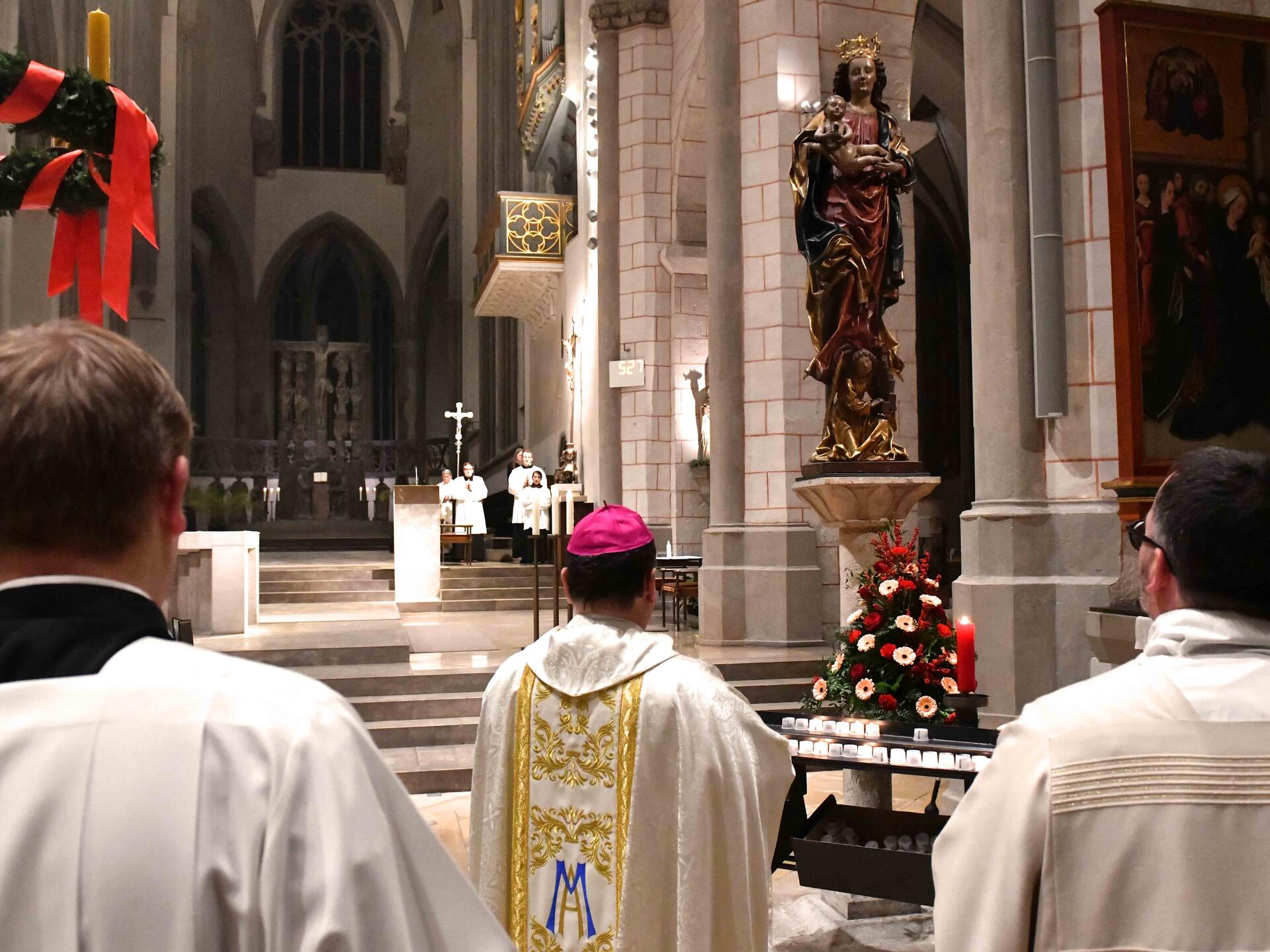 „Heute feiern wir den Beginn einer neuen Zeitrechnung, den Neubeginn der Schöpfung und wir feiern die Bereitschaft einer Frau, sich für den göttlichen Heilsplan zu öffnen, ohne den Ausgang dieses Unternehmens zu kennen“, wies Bischof Bertram in seiner Predigt auf die bedingungslose Zusage der Gottesmutter hin. Dabei fragte er auch nach der eigenen Bereitschaft der Gläubigen, dem Anruf Gottes im Alltag zu folgen und die Christusnachfolge ernst zu nehmen. Diese erfordere, sich stets neu aktiv für Gott zu entscheiden, in einer Weise, die auch anderen Menschen auffalle, so Bischof Bertram.