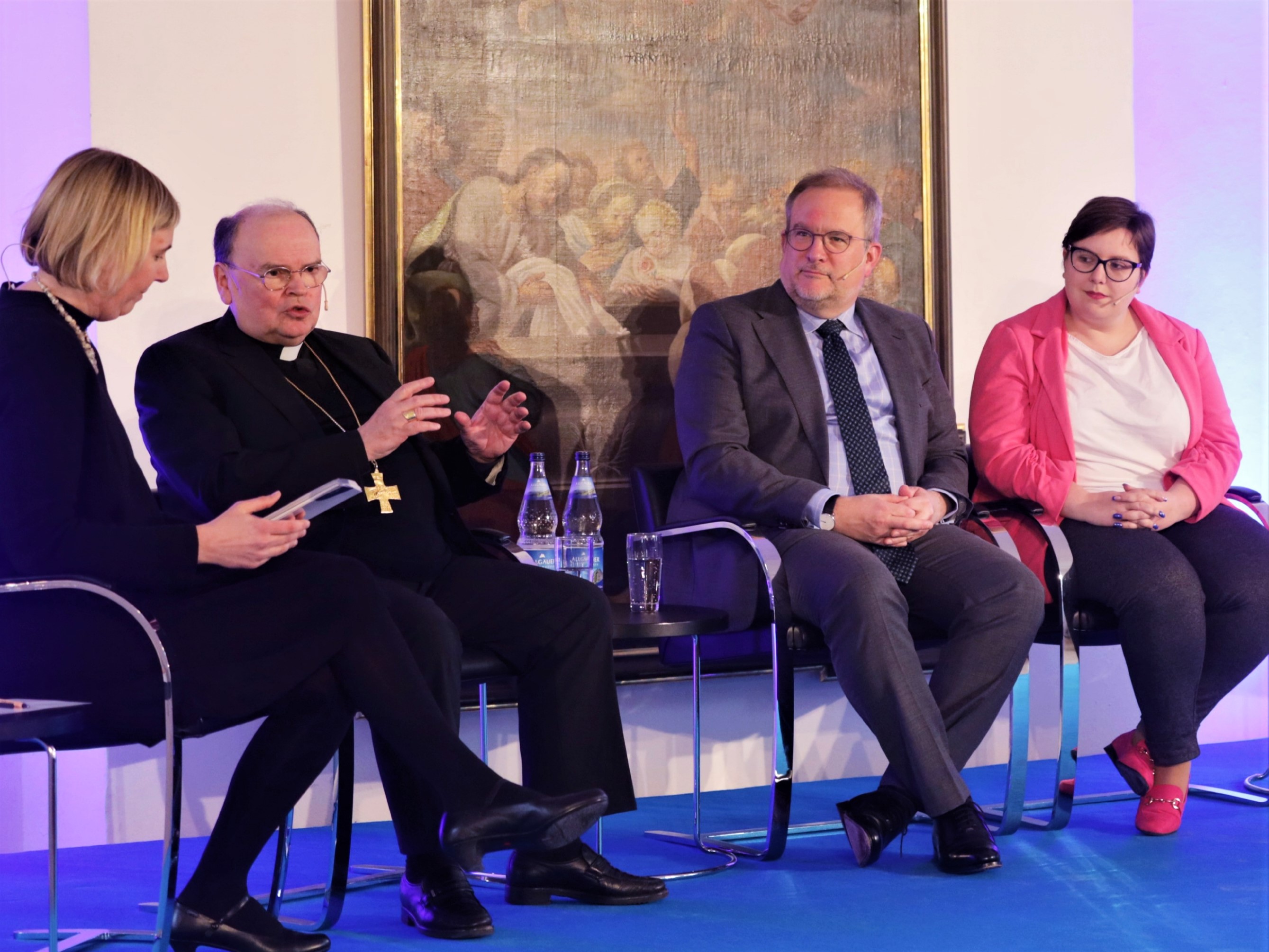 In einer Diskussionsrunde nach der heutigen Bedeutung der christlichen Werte gefragt, die Europa begründet haben, sagte Bischof Bertram: „Für mich ist ein wesentlicher Wert die Freiheit. Wie weit reicht meine eigene Freiheit? Wo fängt die Freiheit des anderen an? Wir sehen das gerade in vielen Diskussionen über die kirchliche Erneuerung in Deutschland. Wir haben eine große Dialogfreiheit, aber wo sind auch die Rahmenbedingungen? Diese Erneuerung der Kirche ist eine Herausforderung für einen Bischof, weil er sich in seiner Freiheit immer zwischen Extremen bewegt.“