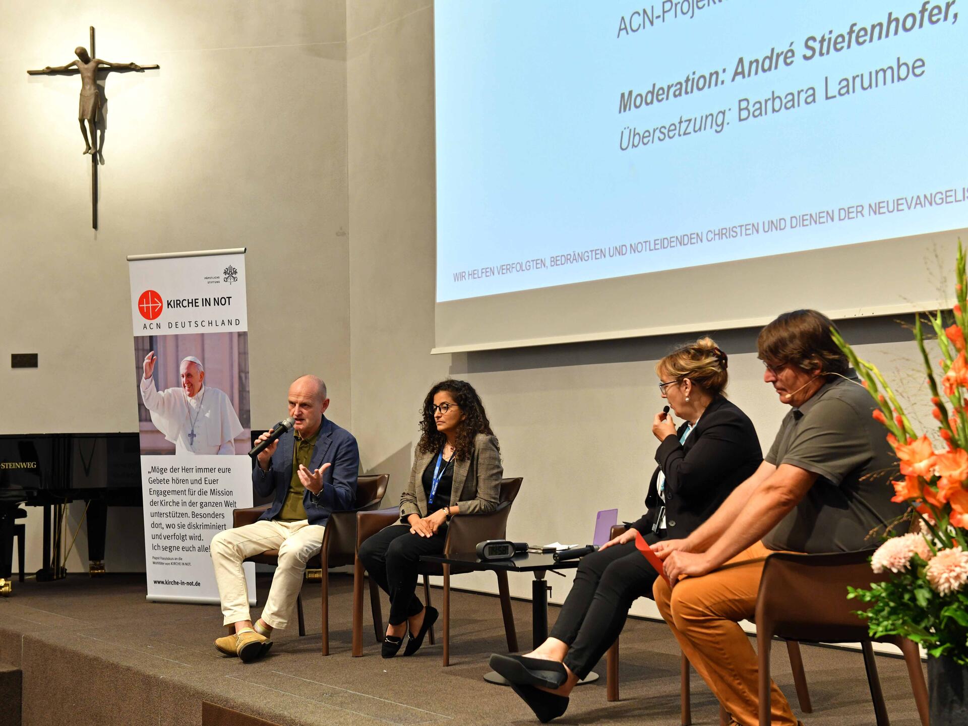 Über die prekäre Lage der Christen in ihrem Heimatland sprach die aus der libanesischen Hauptstadt Beirut stammende katholische Lehrerin Marielle Boutros, die ebenfalls als Projektkoordinatorin für das Hilfswerk tätig ist. Sie erzählte von Schließungen katholischer Schulen und der anhaltenden Auswanderungswelle junger christlicher Frauen und Männer, die dem Land den Rücken kehrten. Während es vor der Finanzkrise noch ein starkes Bildungssystem gegeben habe, müssten seither die Träger – und das sind sehr oft kirchliche – die Kosten für den Schulbetrieb selber schultern beziehungsweise diese auf die Eltern abwälzen. Daraus folgt, dass sich ein Großteil der Eltern die Schulgebühren nicht mehr leisten könne, eine geringere Anzahl von Kindern in die Schule geschickt würde, die Einkünfte für Lehrer nicht einmal die Fahrkosten deckte und bei Schließungen der Religionsunterricht wegfalle, da dieser hauptsächlich in den konfessionellen Schulen stattfindet. Nur mit Hilfe von außen, speziell durch kirchliche Organisationen, könne das Bildungssystem stabilisiert werden, betonte Boutros.