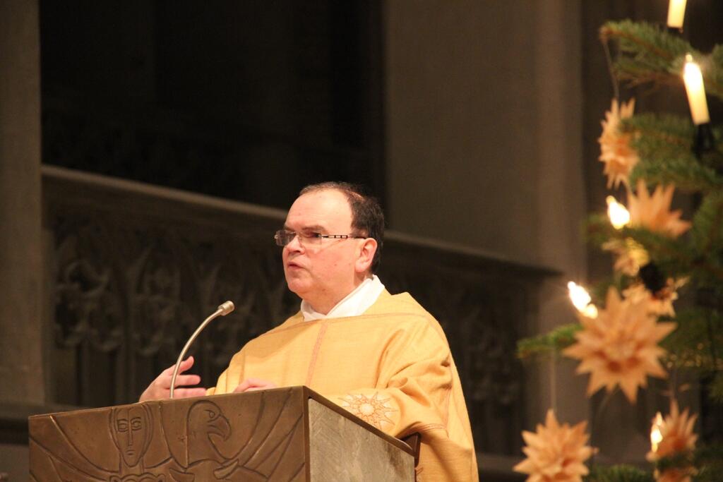 In der Predigt nahm Bertram Meier Bezug auf die Heiligen Drei Könige, die dem Stern folgten, der sie zur Krippe führte. „Wir brauchen Fixsterne für unseren Lebensweg“, sagte er zu den Gläubigen. Auf seine Frage, was die richtigen Sterne für unser Leben seien, meinte er: „Die Sterndeuter haben Jesu in der Krippe gefunden. Weder materielle Werte, noch Einfluss oder Egoismus führen zum Ziel des Lebens, sondern unsere Träume und Sehnsucht nach der Berufung Gottes.“ Er fügte außerdem noch hinzu: „Sich an einen Stern zu orientieren heißt immer auch, auf manche Sonnenseiten zu verzichten. Wer sich an einem Fixstern orientiert, findet seine eigene, persönliche Berufung, egal ob als Priester, Ordensangehöriger oder in der Partnerschaft.“