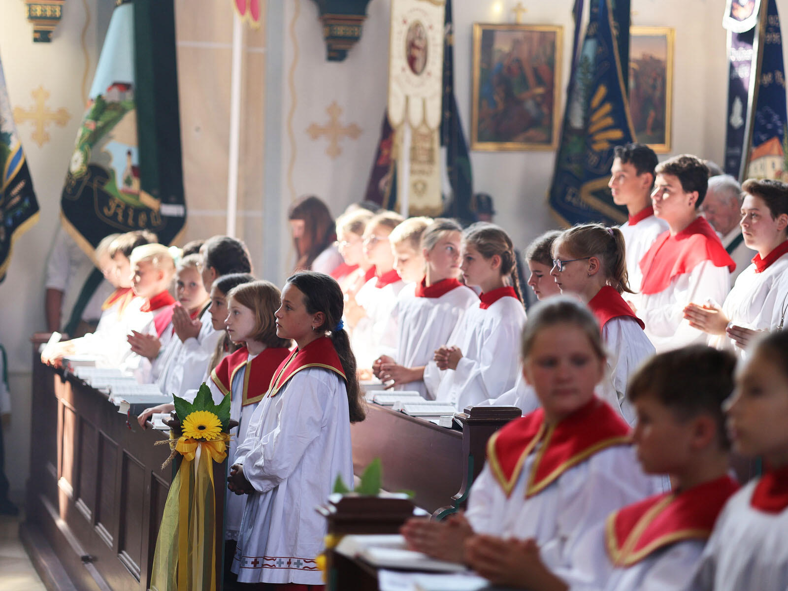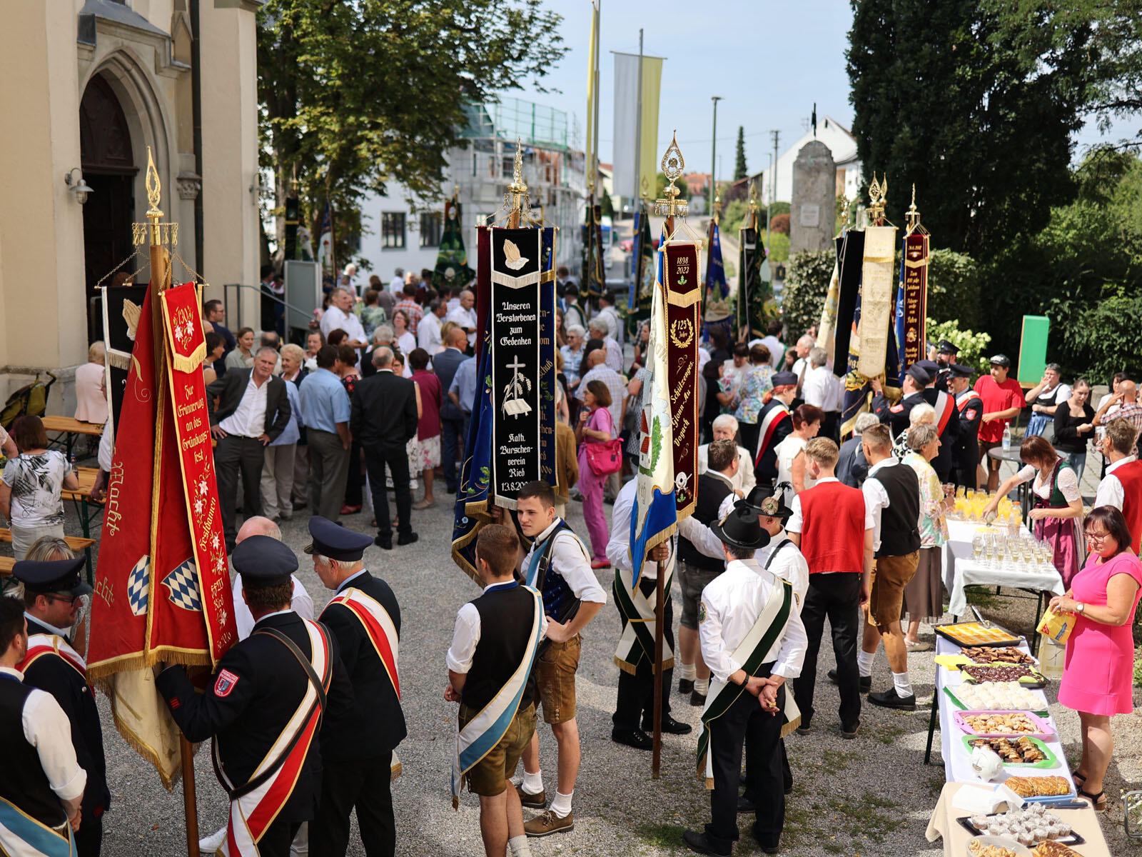 Das Pontifikalamt wurde in Erinnerung an die Weihe der Rieder Pfarrkirche St. Walburga durch Bischof Pankratius von Dinkel am 17. August 1873 gefeiert. Trotz der Sommerferien waren zahlreiche Gäste, Vereine, Verbände sowie Vertreterinnen und Vertreter aus Politik und Gesellschaft gekommen, um den 150. Weihetag gemeinsam zu begehen. Musikalisch wurde der Gottesdienst durch eine eigens begründete Chorgemeinschaft des Baindlkircher Kirchenchors mit dem Eisbachtaler Liederkranz gestaltet.