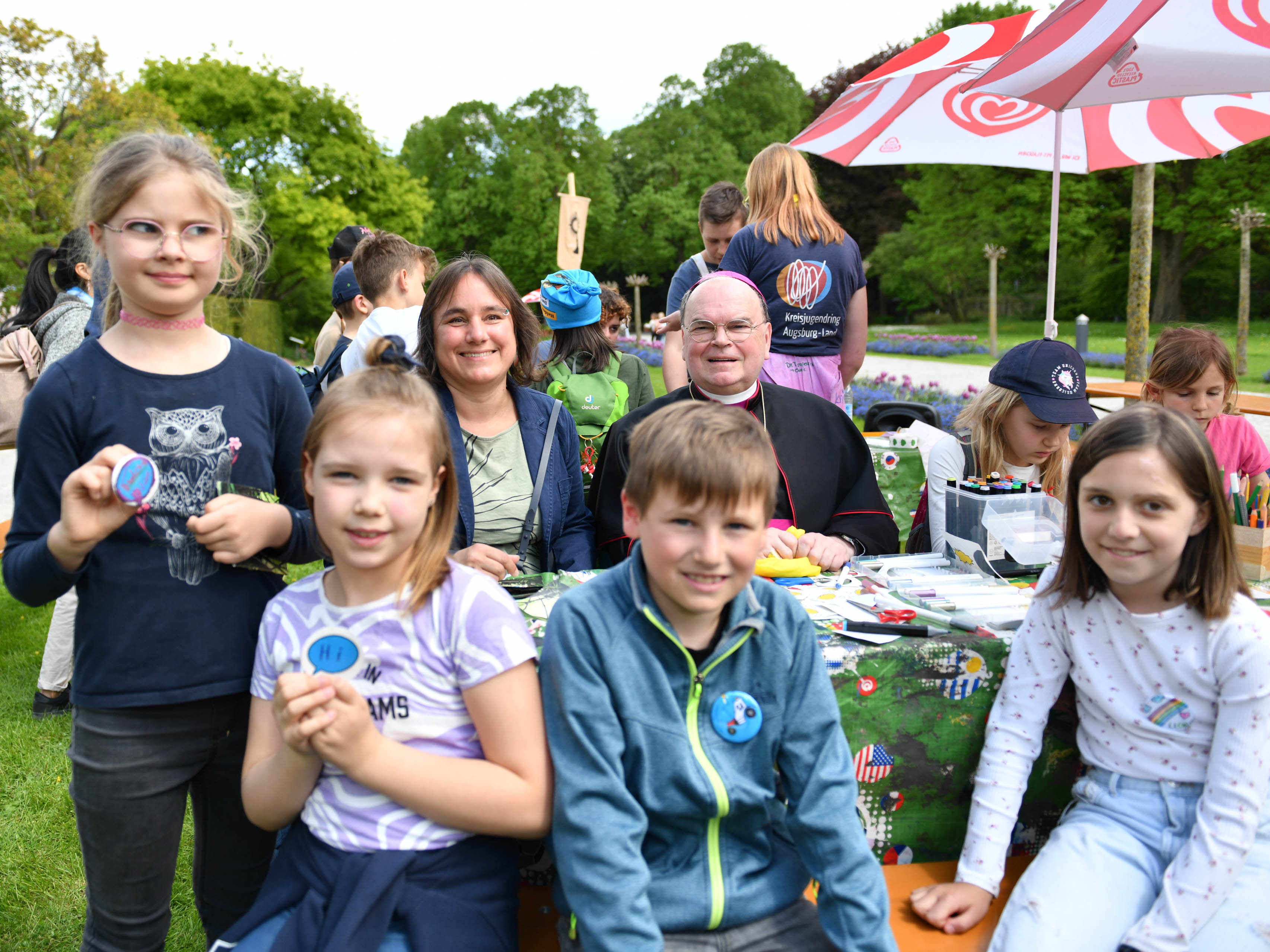„Es ist ganz toll und ich freue mich sehr, dass heute so viele von Euch in den Botanischen Garten gekommen sind“, wandte sich der Bischof bei einer lockeren Begrüßungs- und Fragerunde im Rosenpavillon des Parks an die zahlreichen Kinder, Eltern und Begleitpersonen aus den Pfarreien des Bistums. „Für mich ist ein Held jemand, der den Mut hat, auch einmal Nein zu sagen und sich einsetzt, wenn einer zum Außenseiter gemacht wird“, griff er das Thema des Tages auf. „Weil Jesus uns liebt und an unserer Seite steht, dürfen wir alle Heldinnen und Helden sein“, so Bischof Bertram in der abschließenden Andacht.