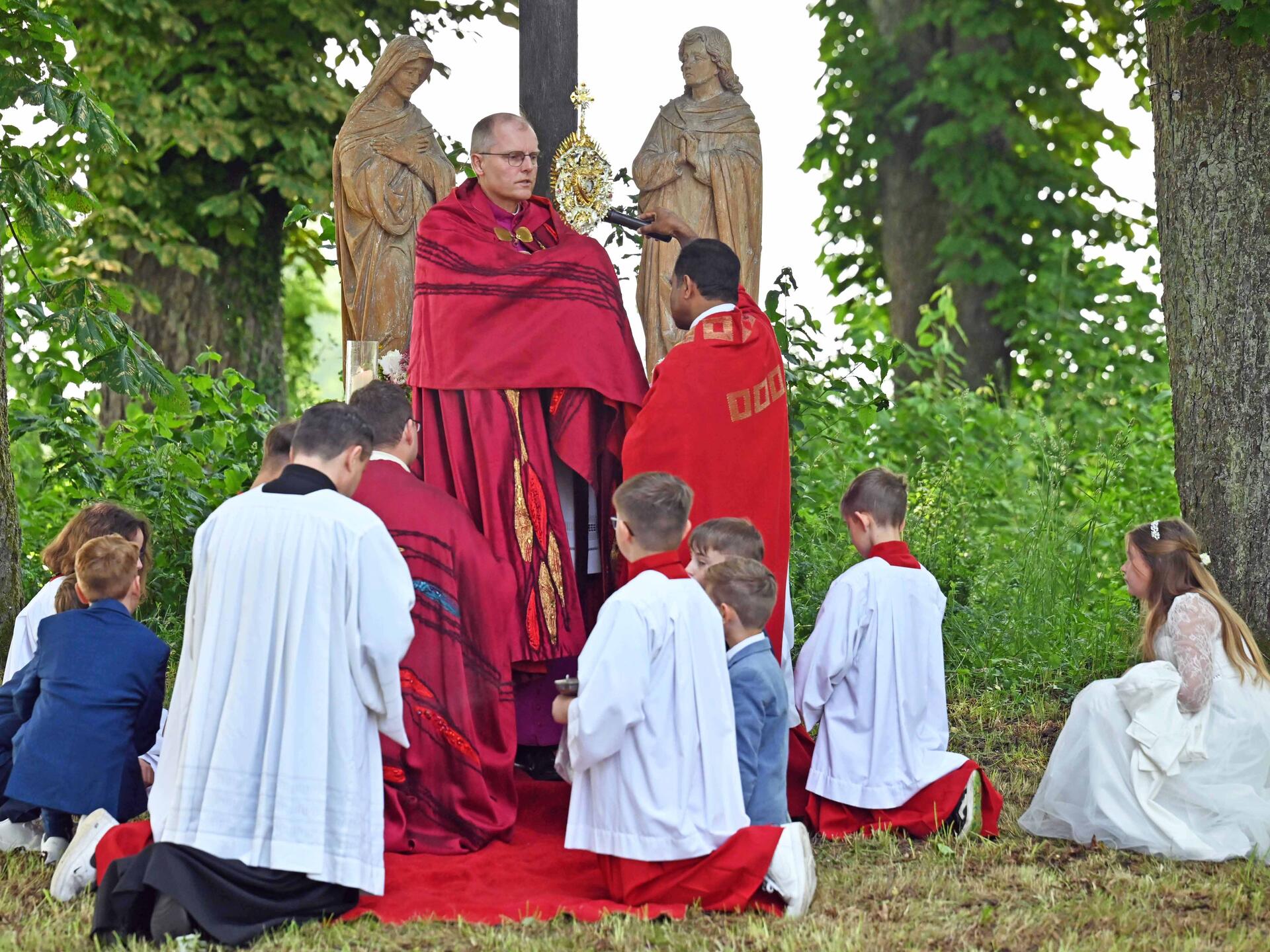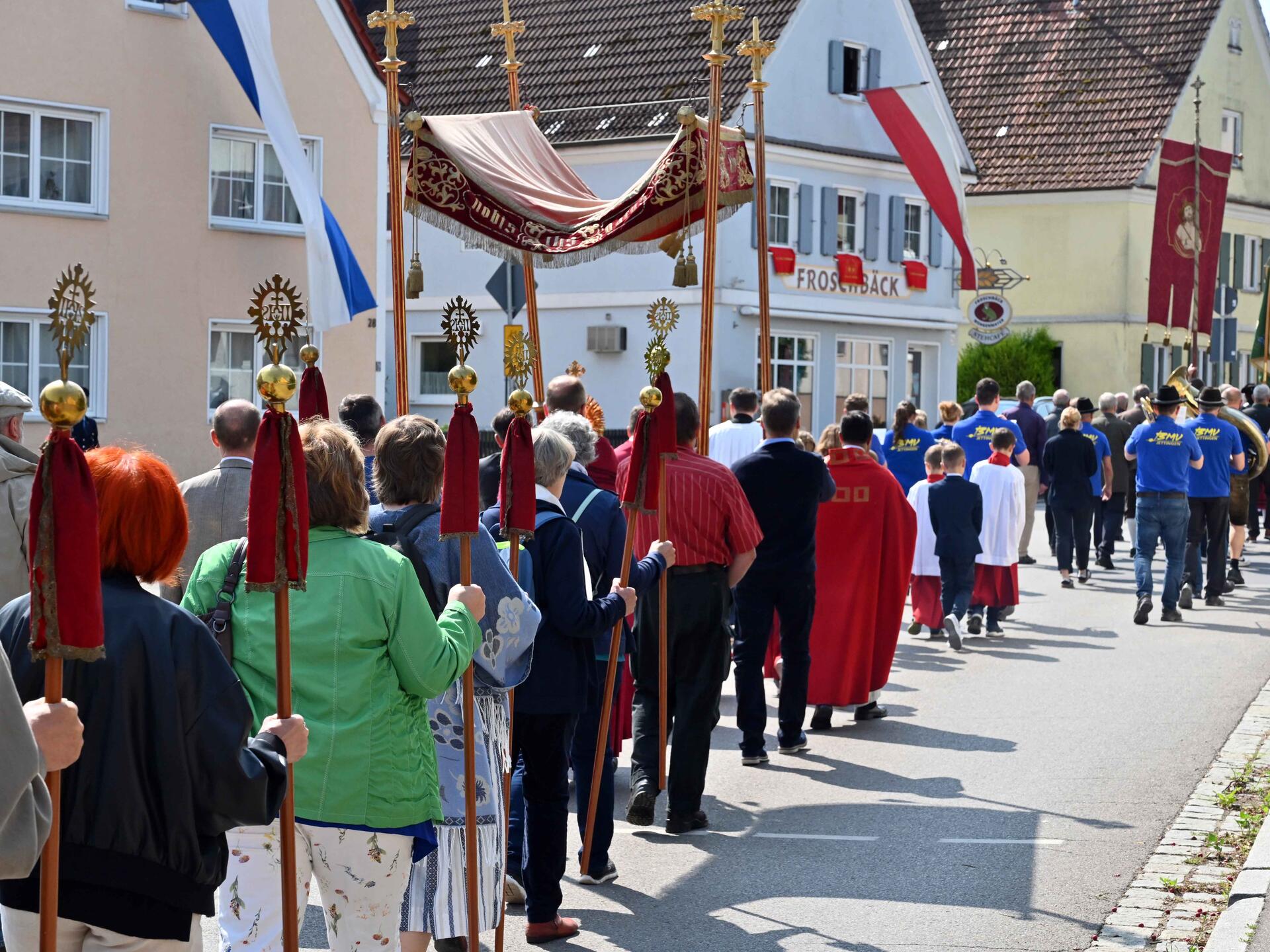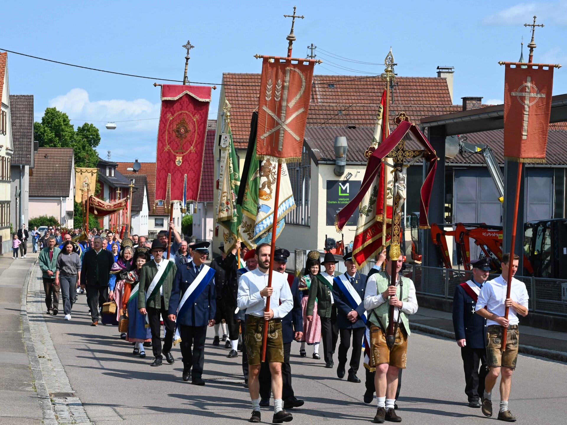Begleitet wurde die Prozession auch heuer wieder durch zahlreiche Vereine. Der Blasmusikverein steuerte die musikalische Gestaltung bei. Der örtliche Kirchenchor sang die „Missa in C“ von Johann Ernst Eberlin.