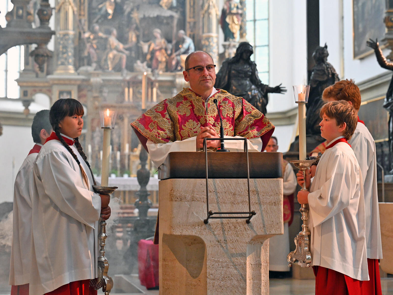 Musikalisch gestaltet wurde der Gottesdienst vom Basilikachor, der unter der Leitung von Peter Bader die Deutsche Messe von Heinrich Walder (*1955) sang. Der Gottesdienst wurde live bei augsburg.tv und allgäu.tv übertragen.