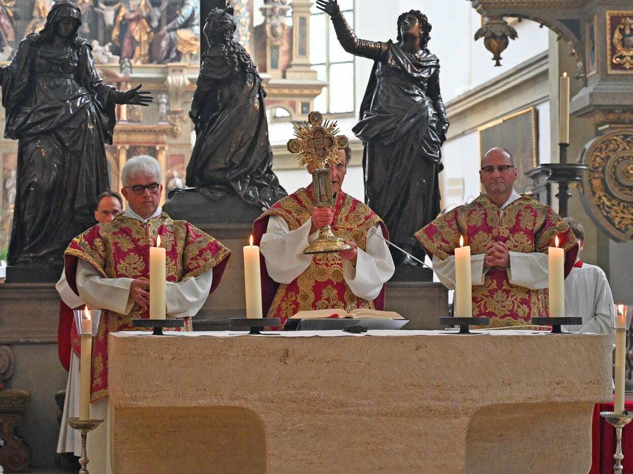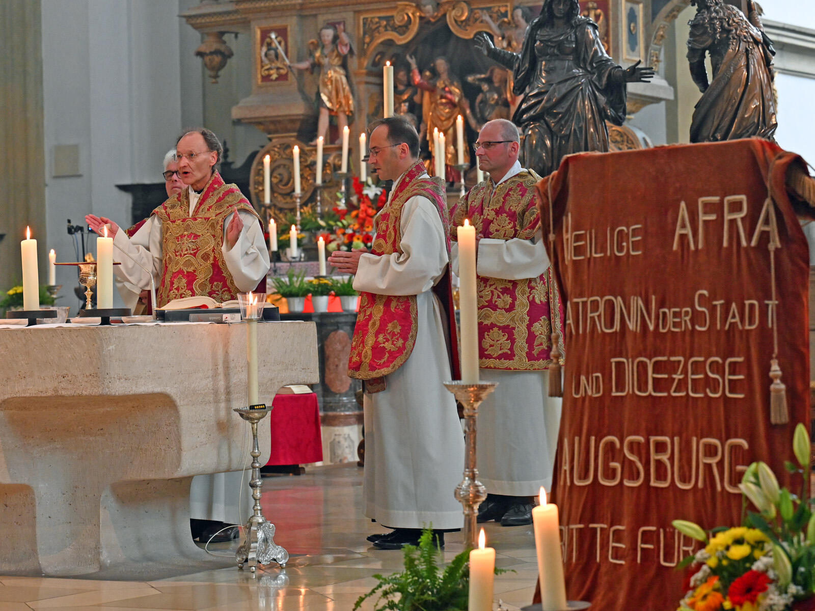 Mit einem feierlichen Gottesdienst haben die Gläubigen an diesem Sonntag der heiligen Afra gedacht. Zum Hochfest der Bistumspatronin erinnerte Generalvikar Msgr. Dr. Wolfgang Hacker in der Basilika St. Ulrich und Afra an den Satz, den Jesus bei seiner Taufe und bei der Verklärung aus dem Himmel gehört hatte („Du bist mein geliebter Sohn“), und fragte: „Hat die heilige Afra diesen Satz gehört: Du bist meine geliebte Tochter? Denn durch die Taufe ist sie ja Kind Gottes geworden, hat Anteil an der Erlösung Jesu Christi, an seinem Schicksal, an Tod und Auferstehung. Deshalb blieb sie standhaft - die heilige Afra war stark, weil sie Kind Gottes war."