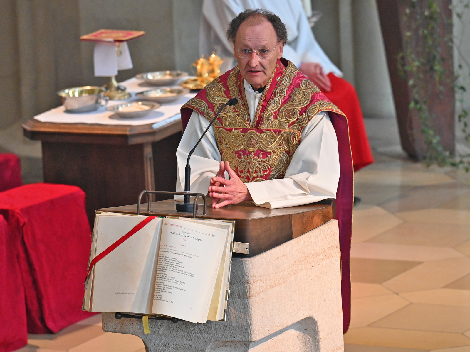 Ausgehend von einem Zitat des Philosophen und Publizisten Peter Sloterdijk überlegte der Augsburger Domdekan, was es heiße, ein geliebtes Kind zu sein. Die Äußerung Gottes aus dem Evangelium vom Fest der Verklärung „Du bist mein geliebter Sohn“ stehe zwar am Beginn des öffentlichen Wirkens Jesu, sei aber schon mit Blick auf die Auferstehung ausgesprochen worden. Sie stelle außerdem die „große Überschrift für den Weg Jesu, sein Kommen und seine Verkündigung“ dar. Diese Formulierung sei ein Verständnisschlüssel für das gesamte Wirken Jesu. „Die Verklärung war außerdem ein Blick in das Heils- und Erlösungsgeschehen, das sich in Jerusalem ereignen sollte.“, so der Generalvikar. Auf dem Tabor ließe sich schon erahnen, was Auferstehung bedeute. Dass nicht der Tod das letzte Wort habe sei das „Urgeheimnis des christlichen Glaubens“.