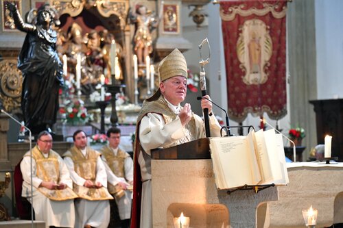 Mit Blick auf das Angebot von Orientierung und Halt in einer Zeit, die unübersichtlicher, schwieriger, digitaler und gefährlicher geworden sei als das in früheren Generationen der Fall war, widmete er sich in seiner Predigt besonders den jungen Menschen, die immer häufiger in Familien aufwachsen, in denen es keine Antworten auf ihre religiösen Sinnfragen gäbe, weil die Eltern es selbst nicht gelernt haben, weil eine Oma fehlt, die ein Gute-Nacht-Gebet vorsagen oder die wundervollen Jesus-Geschichten vorlesen könnte, so der Weihbischof. Wer nun aber meine, dass 90 Minuten Religionsunterricht in der Schule das, was von klein auf nicht geschenkt wurde, ersetzen könne, der greife nach Ansicht des Weihbischofs zu hoch.