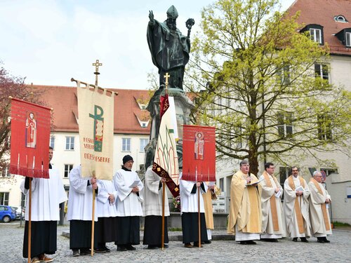 Ganz in Einstimmung auf das im Juli beginnende Ulrichsjubiläum haben sich an diesem Mittwoch rund 250 Mesnerinnen und Mesner aus dem ganzen Bistum in Dillingen, der Heimat des hl. Ulrich, zu ihrer Diözesanwallfahrt versammelt. Nach einer Statio am Denkmal des Bistumspatrons marschierten die Frauen und Männer in einer feierlichen Prozession betend und singend zur Basilika St. Peter. Dort feierten sie einen Wallfahrtsgottesdienst mit dem Präses des Mesnerverbandes und Pfarrer der Pfarreiengemeinschaft Dillingen, Domkapitular Harald Heinrich.