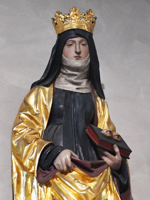 „Manchmal predigt ein Bild mehr als Worte“, sagte der Weihbischof in der Predigt, die von Bischof Bertram geschrieben worden war. Nachdem der Bischof sich aufgrund eines Covid-19-Falls in seinem persönlichen Umfeld am Tag vor der Weihe in Quarantäne begeben musste, übernahm Weihbischof Losinger Predigt und Weihe an seiner Statt. In den Attributen der hl. Odilia – der Namenspatronin der Erzabtei – träten die Grunddienste der Kirche ans Licht. Das Buch stünde für das Wort Gottes, das es zu leben und zu verkünden gelte; der Kelch sei Zeichen für die Eucharistie als Mitte und Höhepunkt des christlichen Lebens, und die Augen seien ein Aufruf, „den Menschen mit den Augen Gottes zu sehen.“ Die hl. Odilia wurde der Legende nach blind geboren, konnte aber nach ihrer Taufe mit zwölf Jahren wundersamer Weise wieder sehen.
