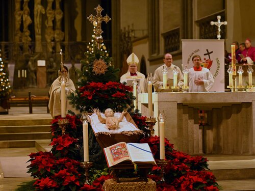 Die Andacht am Silvesterabend ist traditionell von zwei Elementen geprägt: Dank und Bitte. Vor dem ausgesetzten Altarsakrament wurde so auch um den Segen für das neue Jahr gebetet. Die Feier endete mit dem Sakramentalen Segen und dem Te deum. Die musikalische Gestaltung oblag dem Domchor.