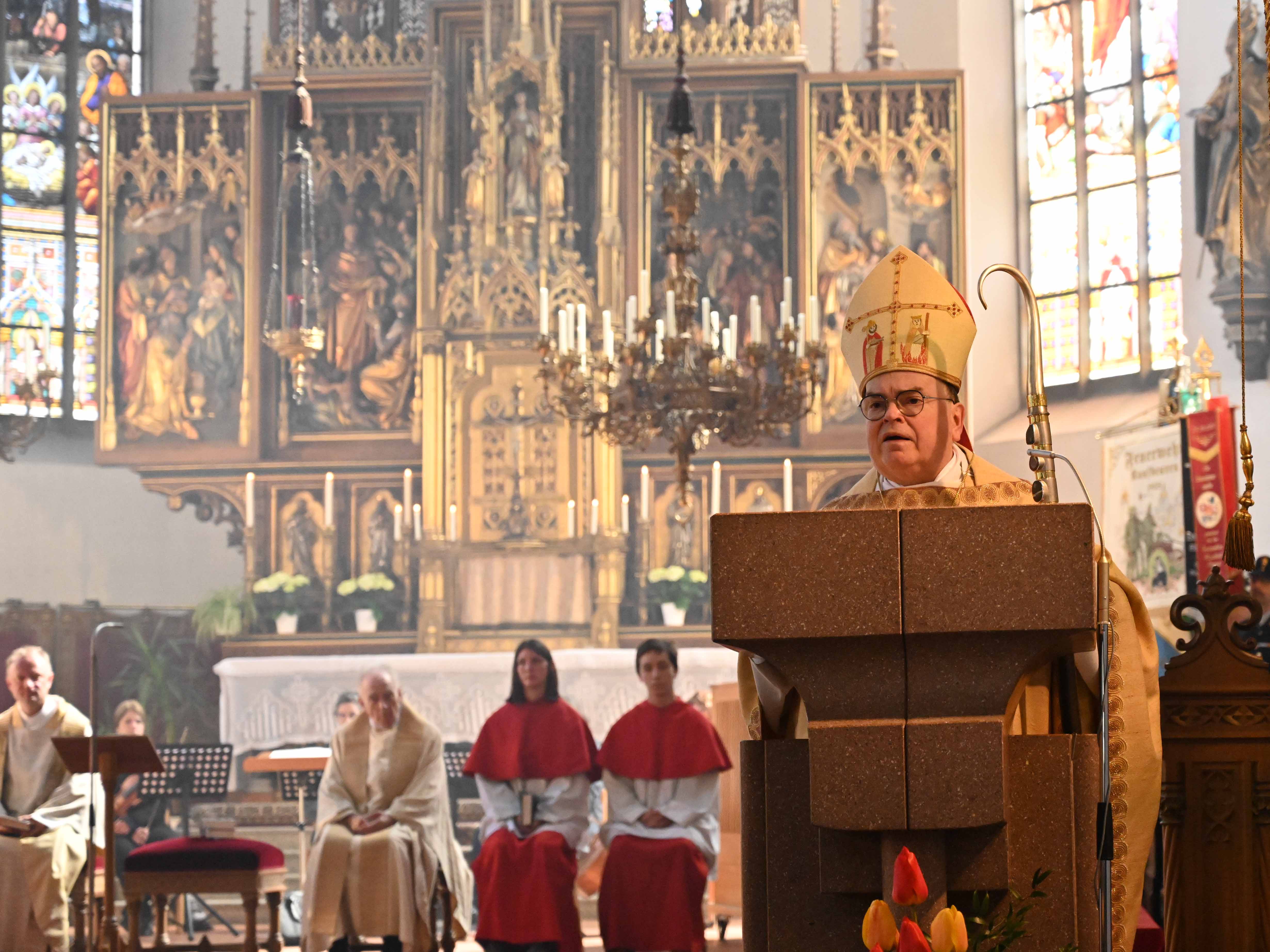 In den vergangenen 25 Jahren, die seit der Heiligsprechung vergangenen sind, habe sich vieles verändert, „die Welt sei ins Wanken geraten“, blickte Bischof Bertram in seiner Predigt in der Kaufbeurer Pfarrkirche St. Martin auf aktuelle Herausforderungen und geopolitische Entwicklungen. Gerade hierbei gelte es, sich auf jenes zu besinnen, was trägt und gelingendes Leben ausmacht, nannte er das Evangelium und die Fürsprache der Heiligen als wertvolle Orientierungshilfen.