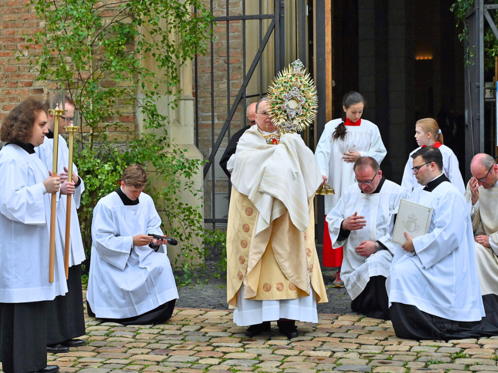 Die Fronleichnamsprozession werde allerdings oft auch als Provokation wahrgenommen. Auch hier verwies der Bischof auf die eigentliche Wortbedeutung von provocare – herausrufen: „Wenn wir nachher auf die Straße gehen, wollen wir die Menschen provozieren, sie herauslocken aus ihrer Reserve, aus ihrer Gleichgültigkeit und Unwissenheit; ja, vielleicht erwächst daraus sogar eine neue Nachdenklichkeit darüber, was wir denn da tun als katholische Christinnen und Christen.“ Sein Traum sei es, dass solch eine provokative Prozession sogar zu einer Einladung werden könne.