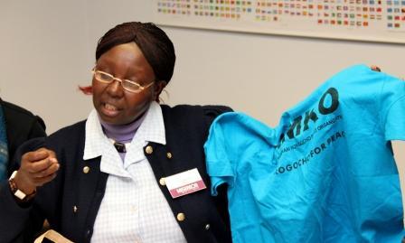 Wie Projektpartner von Misereor Menschen in dieser oft menschenunwürdigen Situation zur Seite stehen, davon berichtete Mwikali. Aufgewachsen in einer ländlichen Gegend, zog sie als junge Frau in das Armenviertel Korongocho bei Nairobi. Sie verdient ihren Lebensunterhalt mit dem Verkauf von Honig. „Nach den Präsidentschaftswahlen 2007 gab es gewaltsame Konflikte zwischen verschiedenen Volksgruppen. Ich setzte mich ein, um wieder Frieden herzustellen. Ich gründete Tanz- und Trommlergruppen mit Mitgliedern unabhängig der ethischen oder religiösen Herkunft,“ erzählte Joyce Mwikali. „Wir versuchen beispielsweise auch durch den Verkauf von Taschen aus Zementsäcken oder Schmuck unsere Lebensumstände zu verbessern.“