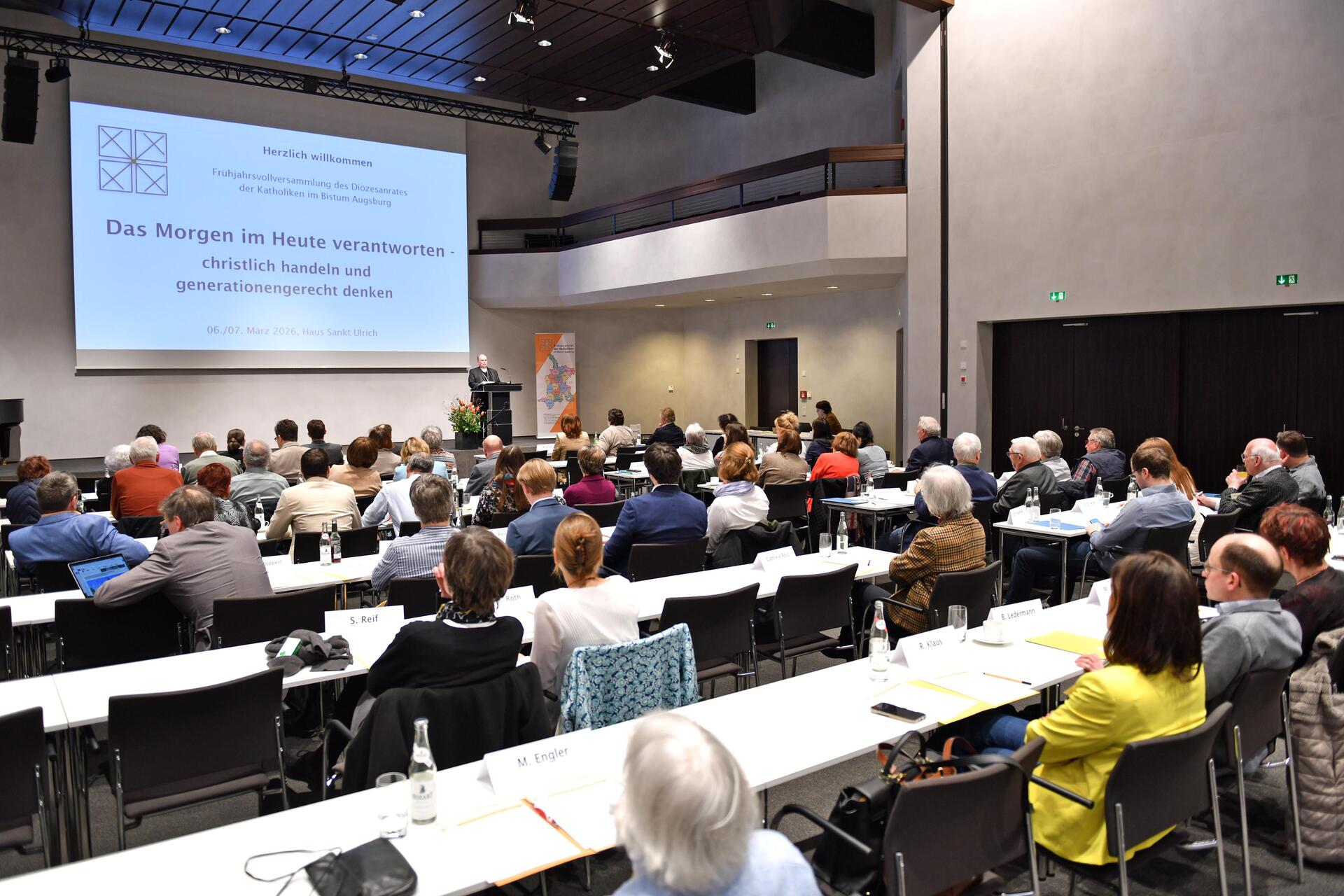 Generationengerechtigkeit, die Sorge um Notleidende, ein Europa mit menschlichem Antlitz: Die Agenda, die sich der Diözesanrat für seine Frühjahrsvollversammlung an diesem Wochenende gegeben hat, greift existenzielle Themen auf. An diesem Freitagnachmittag, dem Auftakt zur Vollversammlung, standen neben dem Eröffnungsgottesdienst mit Bischof Bertram Impulse aus der und für die Diözese sowie der traditionelle Bericht der Diözesanratsvorsitzenden im Mittelpunkt.