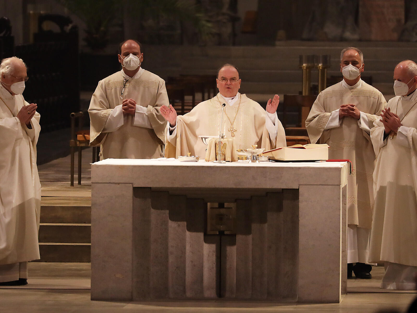 Bischof Bertram hat mit einem Pontifikalamt zum Gründonnerstag das Gedächtnis des Letzten Abendmahles begangen. In seiner Predigt bezog er sich auf Jesus als „Fußpfleger“ der Menschen. Die traditionelle Fußwaschung am Gründonnerstag musste coronabedingt entfallen.