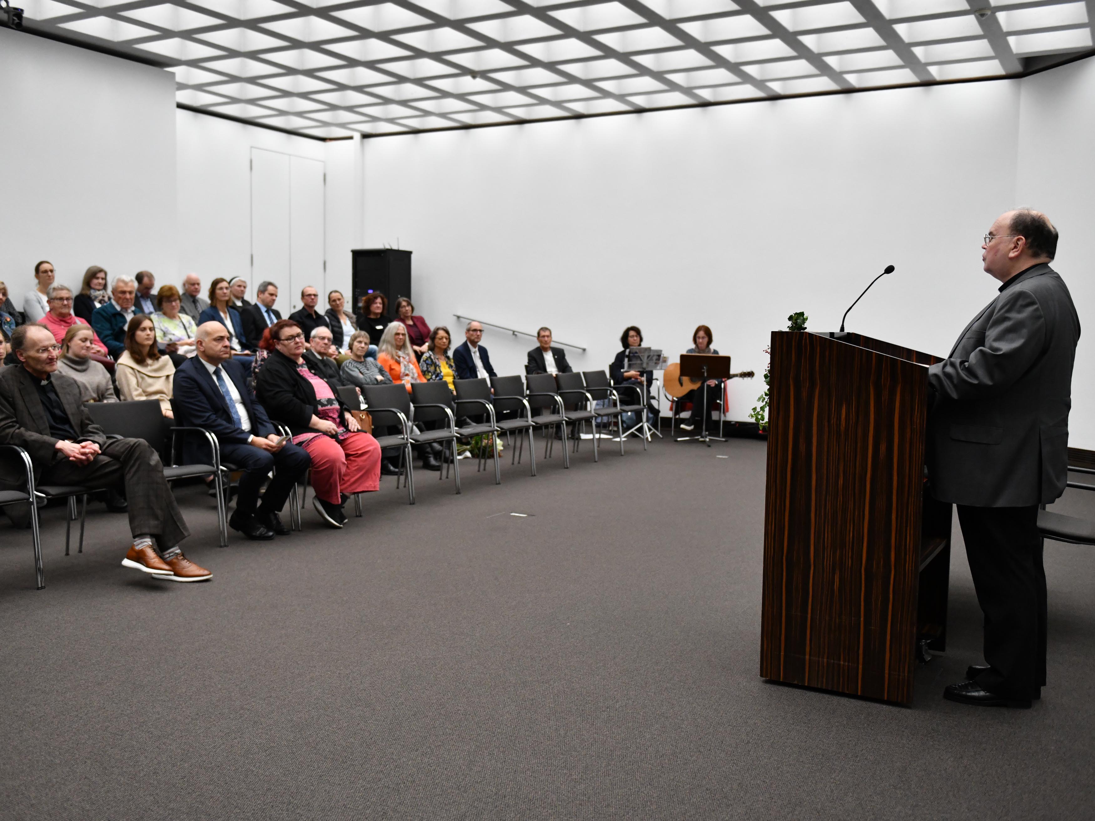 „Wer für ungeborenes Leben eintritt, muss zum Anwalt derer werden, denen dieses Leben anvertraut ist. Hier ist unbürokratische Hilfe gefragt. Aus diesem Grund hat mein geschätzter Vorgänger Bischof Viktor Josef Dammertz den Bischöflichen Hilfsfonds 1999 ins Leben gerufen“, blickte Bischof Dr. Bertram Meier bei einem Grußwort im Rahmen der Feierstunde auf die Anfänge der Stiftung sowie der damit eng verbundenen „Katholischen Beratung für Schwangere und junge Familien“ des Sozialdienstes Katholischer Frauen (SkF) zurück. Wenn Eltern und junge Familie, durch die Ankunft neuen Lebens herausgefordert oder vielleicht sogar überfordert seien, brauche es Orte, an denen das Herz ausgeschüttet werden dürfe und Optionen für das Leben aufgezeigt würden, wandte sich Bischof Bertram dankend an alle Beraterinnen und Engagierten in den Beratungsstellen des SkF.