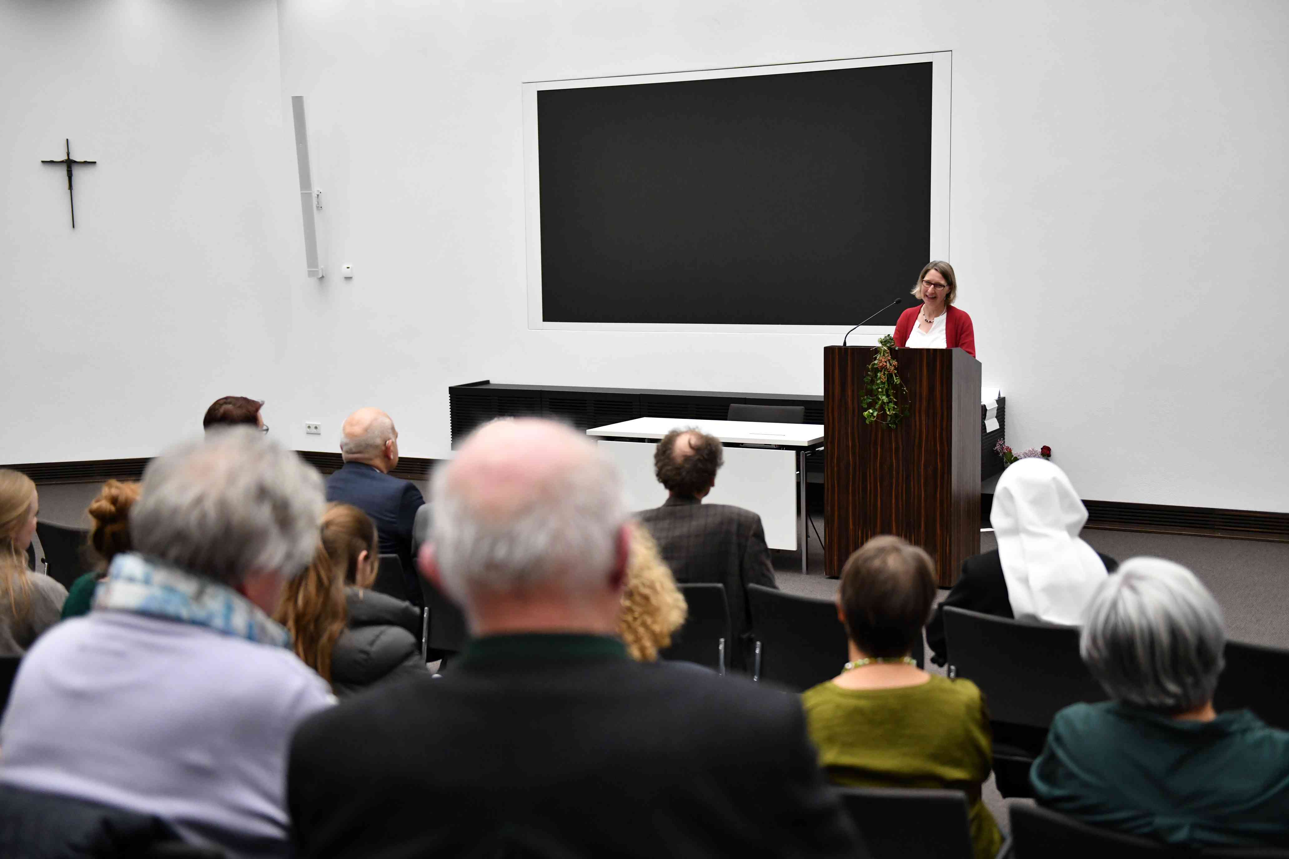 Auch Heidelinde Hentschke, Vorständin des Bischöflichen Hilfsfonds Pro Vita sowie Beauftragte für den SkF und Fachbereich Schwangerenberatung, zeigte sich bei der Feierstunde dankbar für das engagierte Tun aller Beteiligten und das langjährige erfolgreiche Wirken der Stiftung: „Seit einem Vierteljahrhundert werden Frauen, egal welcher Religion und Herkunft, die durch die Schwangerschaft oder die Geburt eines Kindes in finanzielle Not geraten, unterstützt: Die Schwangerschaftskleidung, die ersten Strampler, das Kinderbett, alles das kann durch den Hilfsfonds finanziert werden.“ Pro Vita sei für die Klientinnen wie ein Atem holen. „Wir verschaffen den Klientinnen ein bisschen Luft, eine kurze Pause, um den nächsten Schritt gehen zu können. Ich bin dankbar, dass durch die Spendenbereitschaft und die verantwortungsvolle Unterstützung des Bistums so ein ‚Atem holen‘ möglich wird. Für mich ist diese Arbeit die konkrete Fortschreibung des Evangeliums und gelebte Nachfolge Jesu“, sagte Hentschke. Gleichzeit schlug sie aber auch nachdenkliche Töne an. „Seit 25 Jahren ist dieser Hilfsfonds ‚not-wendig‘ und ich sehe nicht, dass sich das in nächster Zeit ändern wird. Immer noch sind Kinder ein Armutsrisiko und die Entscheidung, ein Kind zu bekommen unter Umständen der Weg in den sozialen und gesellschaftlichen Abstieg. Dass Frauen und Familien überhaupt in die Lage kommen auf Hilfsgelder angewiesen zu sein, ist ein Sachverhalt, an den wir uns nicht gewöhnen dürfen!“ Besonderen Dank für ihr Engagement richtete sie schließlich an die Mitglieder des Kuratoriums und des Bewilligungsausschusses, die Vertreterinnen des SkF sowie alle Spenderinnen und Spender.