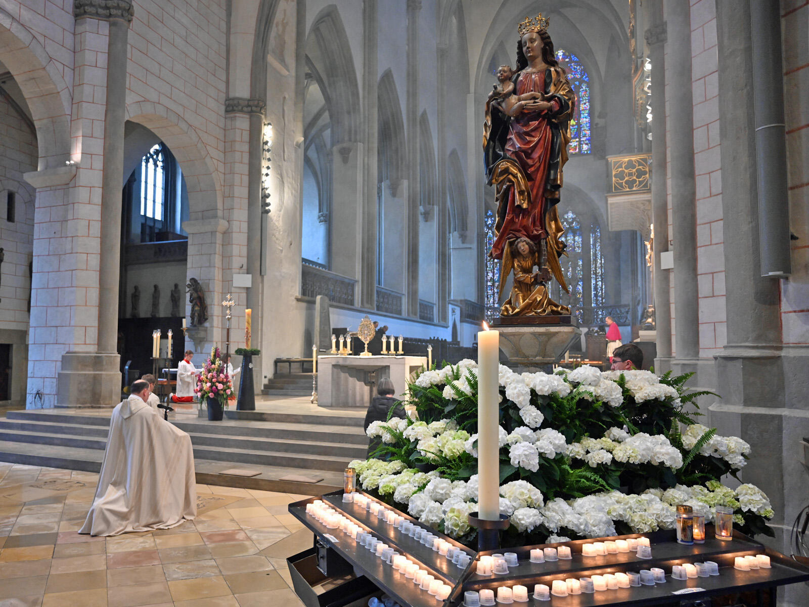 Im Rahmen der ersten Maiandacht am Hochfest der Patrona Bavariae im Augsburger Dom lud Bischof Bertram die Anwesenden dazu ein, Marias Rolle als Mittlerin und Mediatorin genauer zu betrachten. Die Predigt bildete gleichzeitig den Auftakt für seine Marienkatechesen. Bereits am Morgen hatte er im Baringer Münster im Bistum Eichstätt den Tag der Landespatronin gefeiert, und dabei betont, dass der Ausruf Mariens auf der Hochzeit von Kanaa noch heute gelte: „Was er euch sagt, das tut.“