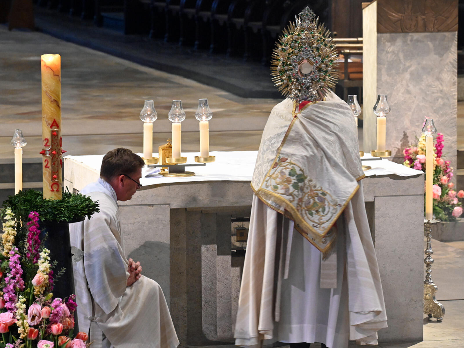 Die Gläubigen rief der Bischof daher auch dazu auf, diesem Rat zu folgen: „Alles, was wir investieren müssen, ist die Krüge mit unserem Alltag zu füllen, mit dem schlichten Wasser der kleinen Erfolge, aber auch der Misserfolge, mit unserem Zurückbleiben hinter unseren Vorsätzen und Erwartungen, mit dem Scheitern und den Wunden, die wir uns und anderen schlagen – halten wir nichts von uns für uns zurück, damit es Christus in sein Kreuzesopfer mithineinnehme und ganz umwandeln kann in den Wein der Liebe und Fülle.“