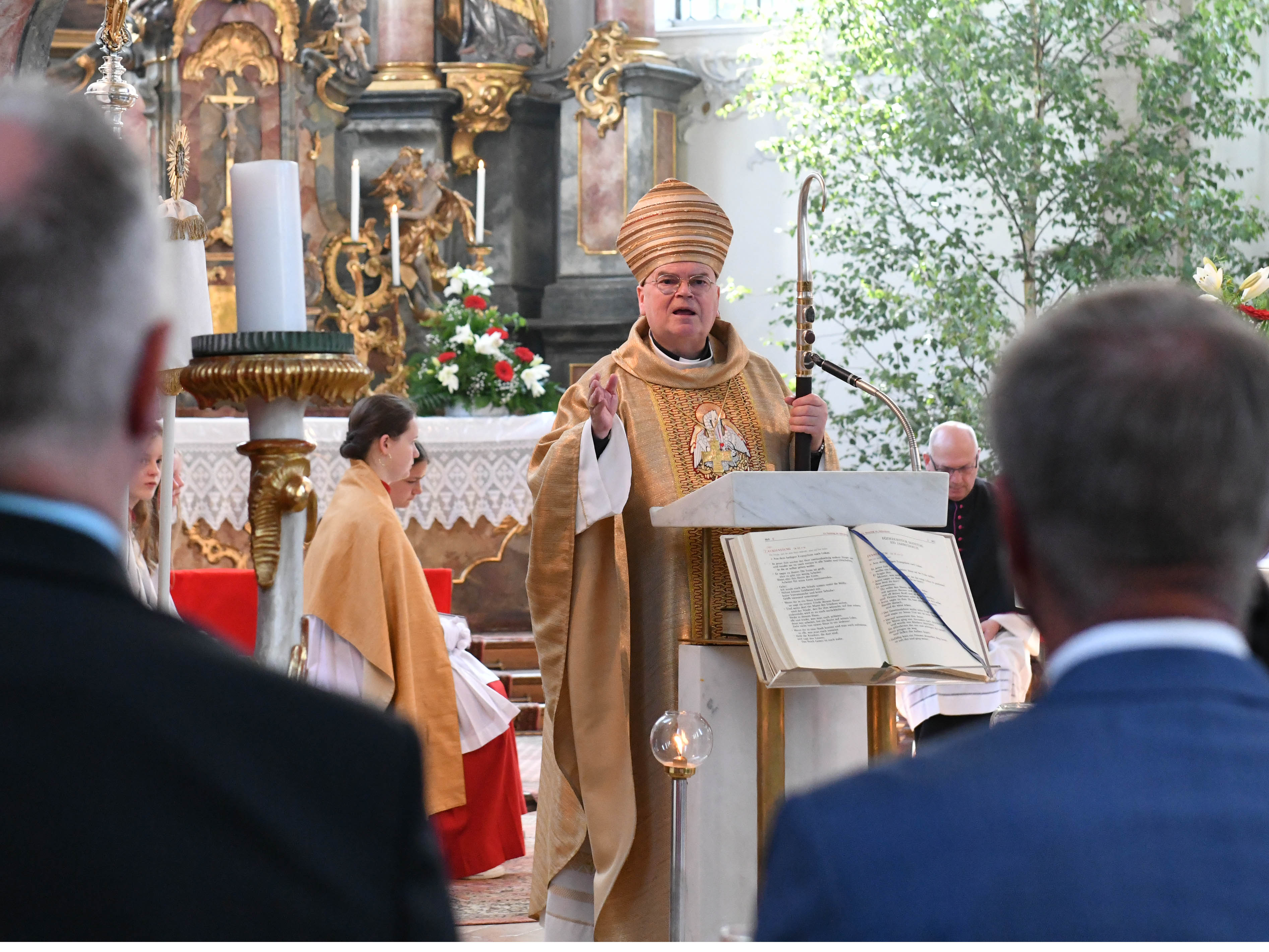Anlässlich des Festes der Antoniusbruderschaft in Großaitingen hat Bischof Dr. Bertram Meier die Gläubigen dazu aufgerufen, mit dem heiligen Antonius tagtäglich den Glauben zu finden. Der Heilige sei viel mehr als nur der „Schlamper-Toni“ - der Patron für die Unordentlichen, die etwas suchen: „Seine Predigten“, so Bischof Bertram, „strömten aus einem tiefen inneren Glauben und einer engen Verbindung zu Jesus Christus. Und was er predigte, das verkörperte er.“