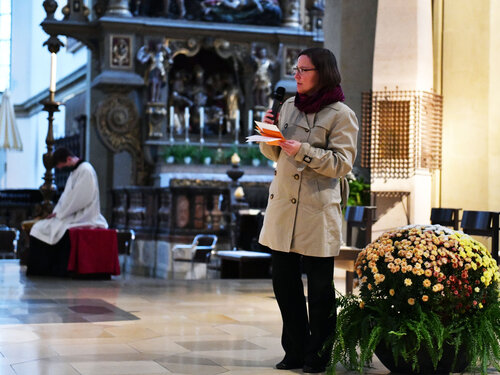 Im Anschluss an die Predigt gab es für die anwesenden Mitglieder des Diözesanrats noch innerhalb des Gottesdienstes die Möglichkeit, ihre Anmerkungen, Überlegung und auch Kritiken zu den Impulsen der Predigt schriftlich zu formulieren. Die Amtsleiterin des Bischofs, Sr. Anna Schenck CJ, sammelte die Kommentare und moderierte das folgende „Predigtgespräch“, in dessen Rahmen Bischof Bertram antworten und erläutern konnte. Der Gottesdienst endete mit dem feierlichen Schlusssegen des Bischofs, woraufhin sich die Ratsmitglieder zu ihrer eigentlichen Sitzung versammelten.