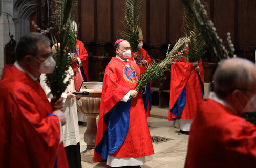 Bischof Bertram hat am Palmsonntag in einem Pontifikalamt im Hohen Dom den Einzug Jesu in die heilige Stadt Jerusalem gefeiert. In seiner Predigt sprach er über die menschliche Natur der Kirche und die Einladung Jesu an alle, mit ihm mitzugehen.