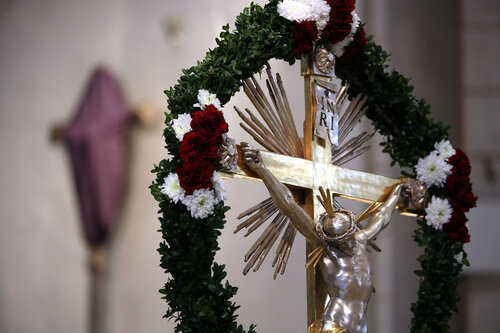 Eine unbefleckte katholische Kirche könne es ebenso wenig geben wie einen unschuldigen, sündenlosen Menschen: „Denn die Kirche sind wir selbst, Spiegel des Menschseins. Obwohl wir dem Allerheiligsten dienen, sind wir oft alles andere als heilig. Das müssen wir zugeben. Das können wir beklagen. Ändern aber können wir es nicht.“ Abschließend dankte der Bischof den Anwesenden für ihr „Mitlaufen“ mit der Kirche auch durch schwierige Zeiten – „nicht als unkritische Mitläufer, sondern als konstruktive Wegbegleiter und -gestalter“, vereint mit dem Kreuz als gemeinsamem Ziel.