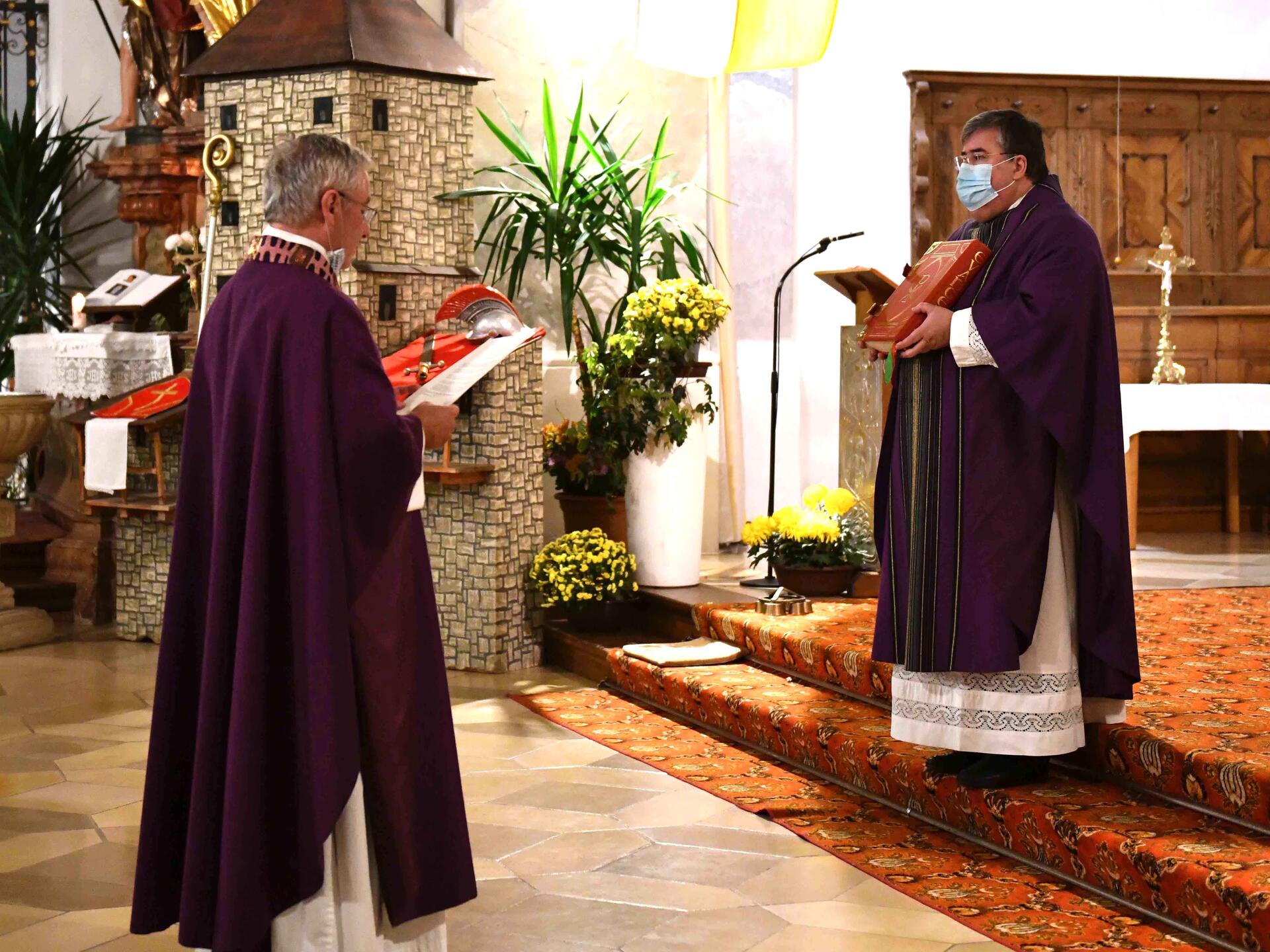 Die Amtseinführung fand im Rahmen des Kapiteljahrtags im Dekanat Dillingen statt. Priester und Mitarbeiter aus dem diakonalen wie seelsorglichen Dienst des Dekanats feierten den Gottesdienst mit. Coronabedingt konnte er nur im kleinen Rahmen stattfinden. Nach Verlesen der Ernennungsurkunde und Abnahme des Treueeids richtete Generalvikar Heinrich seine Glückwünsche an den neuen Dekan.